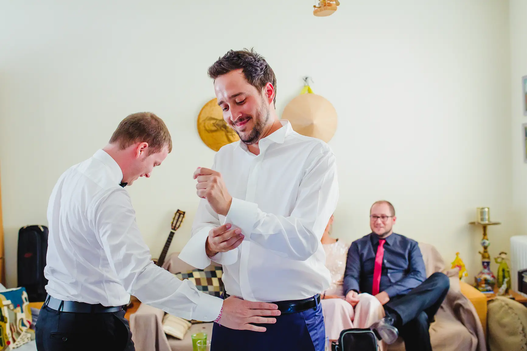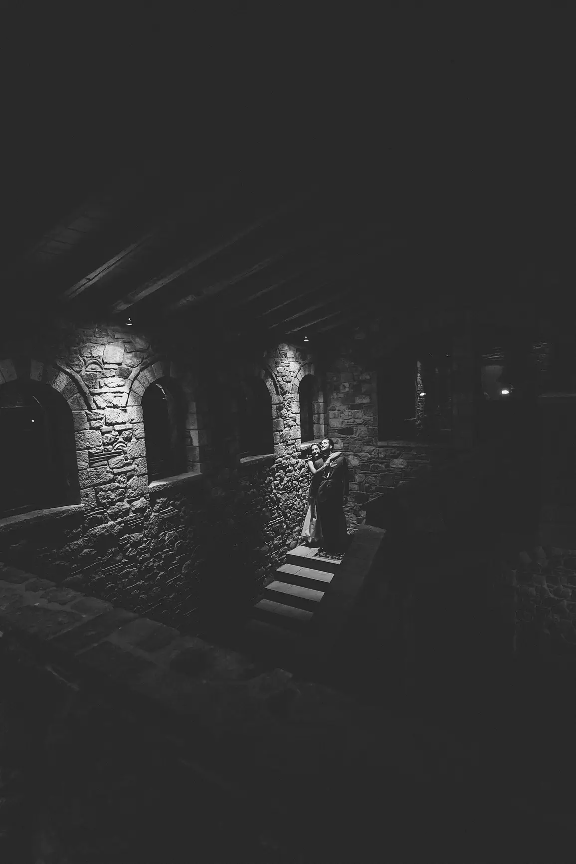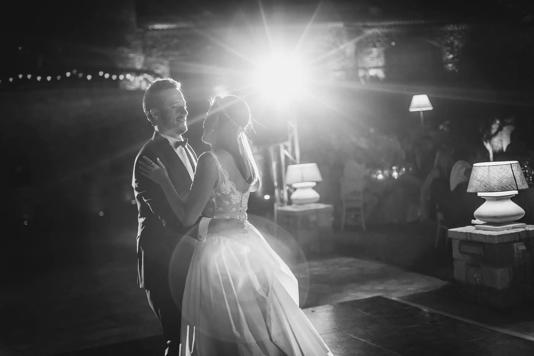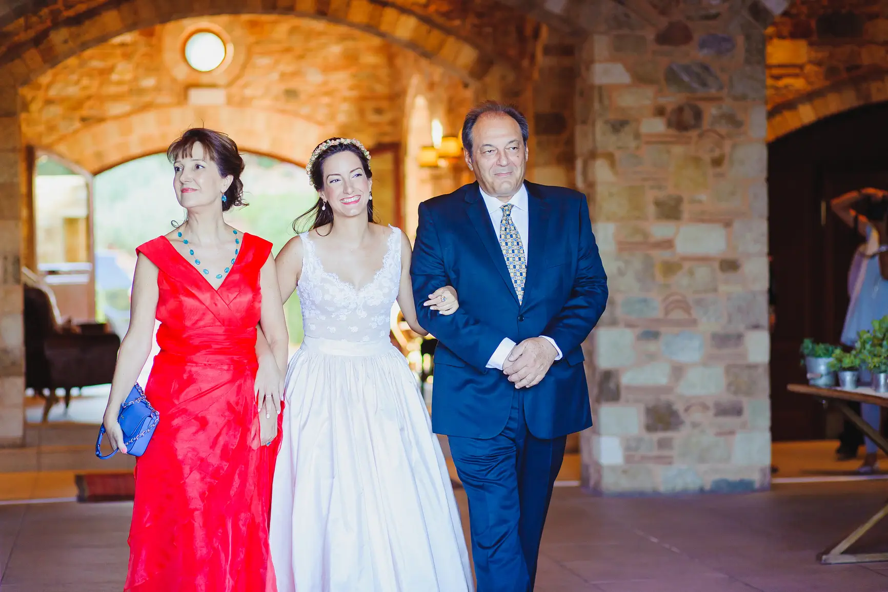 It was an evening that seemed straight out of a fairy tale, with a full moon bathing Pyrgos Petreza in its silver light. The beautiful stone building, with its stately gardens, transformed into the ideal setting for Dani and Christianna’s fairy-tale wedding. The atmosphere was magical, filled with anticipation and emotion, as the elegantly dressed guests filled the spaces, creating a warm, joyful buzz.