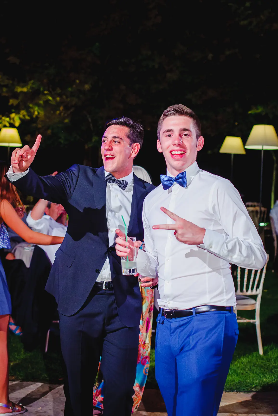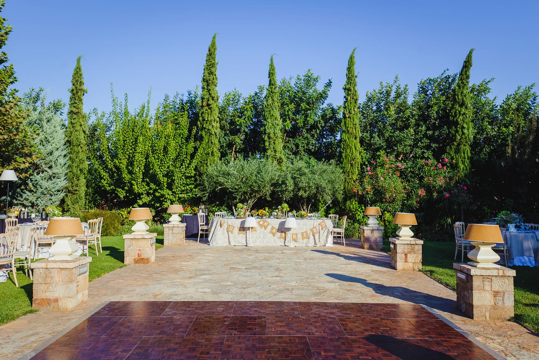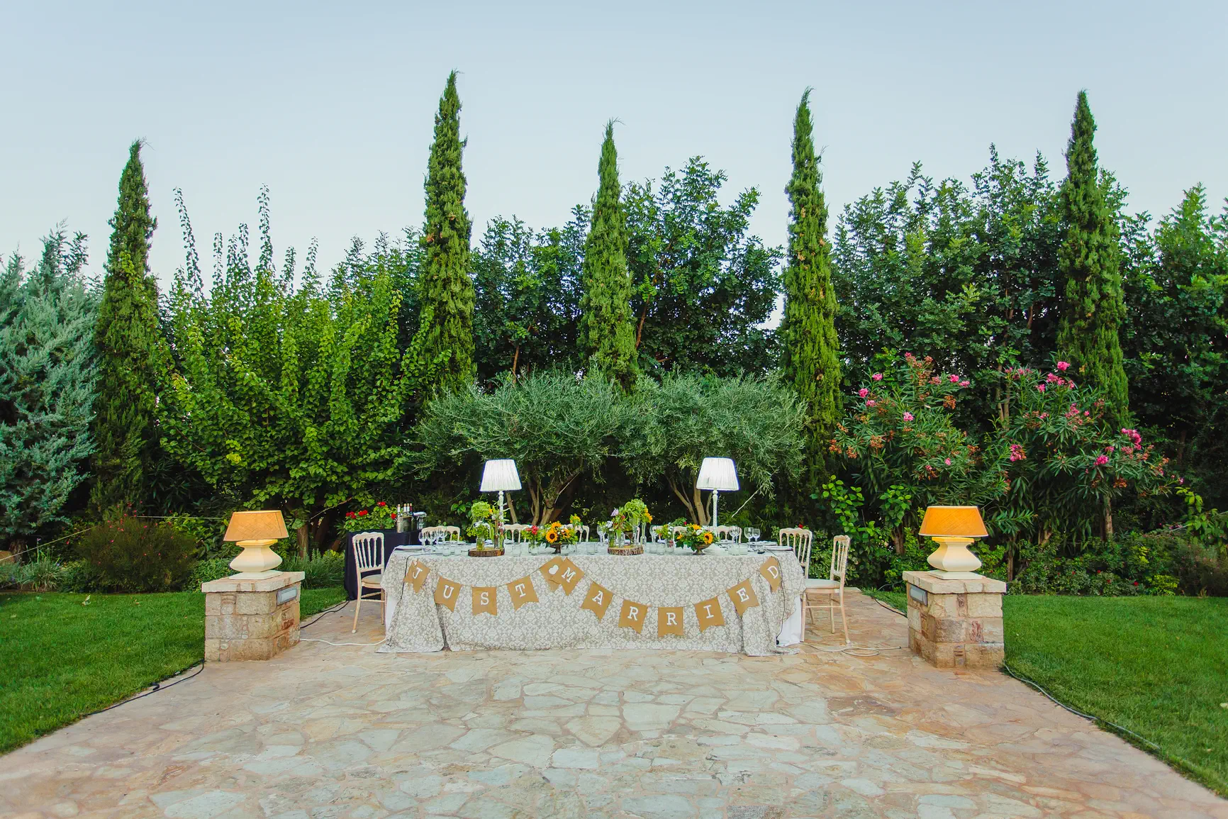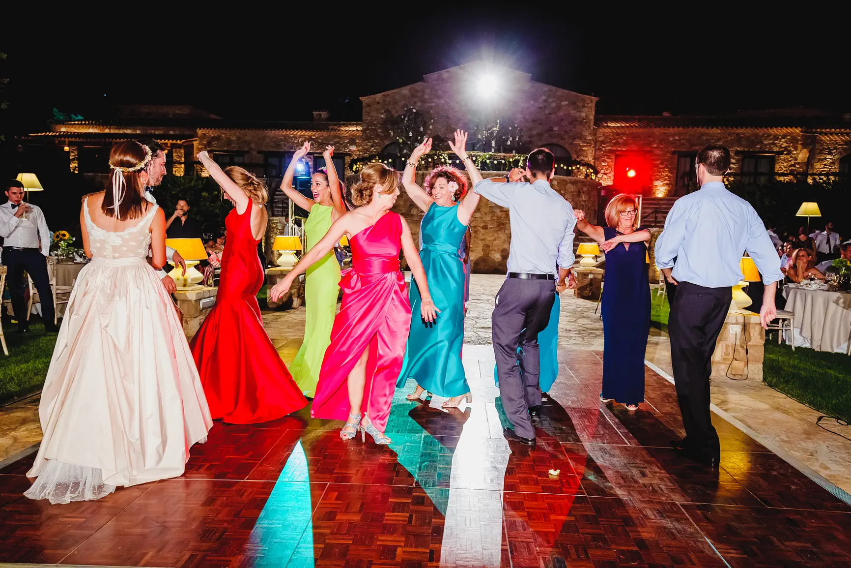 Immediately after the ceremony, the atmosphere became electric and the excitement ignited. A wild celebration began, with music flooding the lush gardens, calling everyone to dance. Laughter, wishes, and joyful voices merged into an endless rhythm as guests gave themselves over to absolute enjoyment. Exquisite food and fine drinks flowed abundantly, complementing the sense of unlimited bliss. Pyrgos Petreza vibrated with their liveliness, with dancing and singing continuing until the early morning hours.
