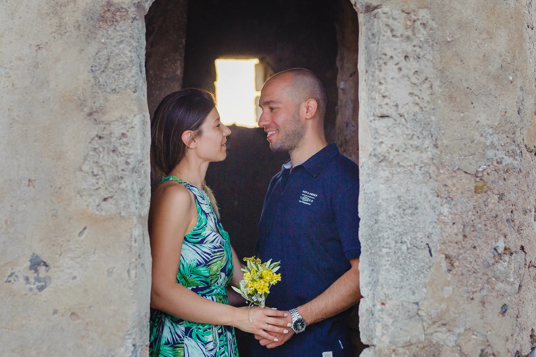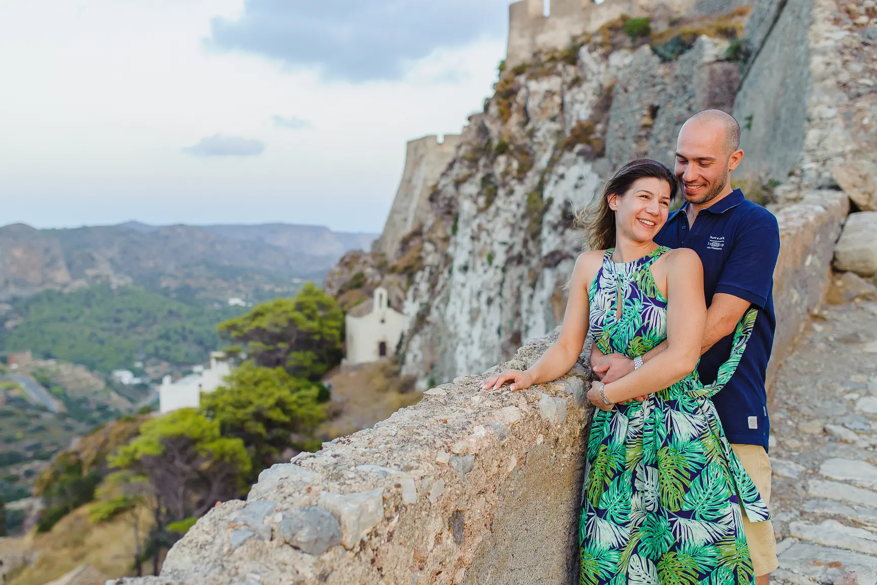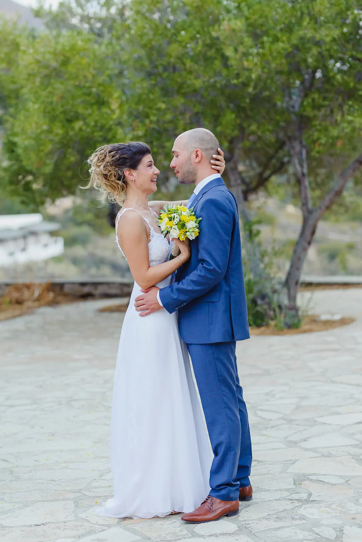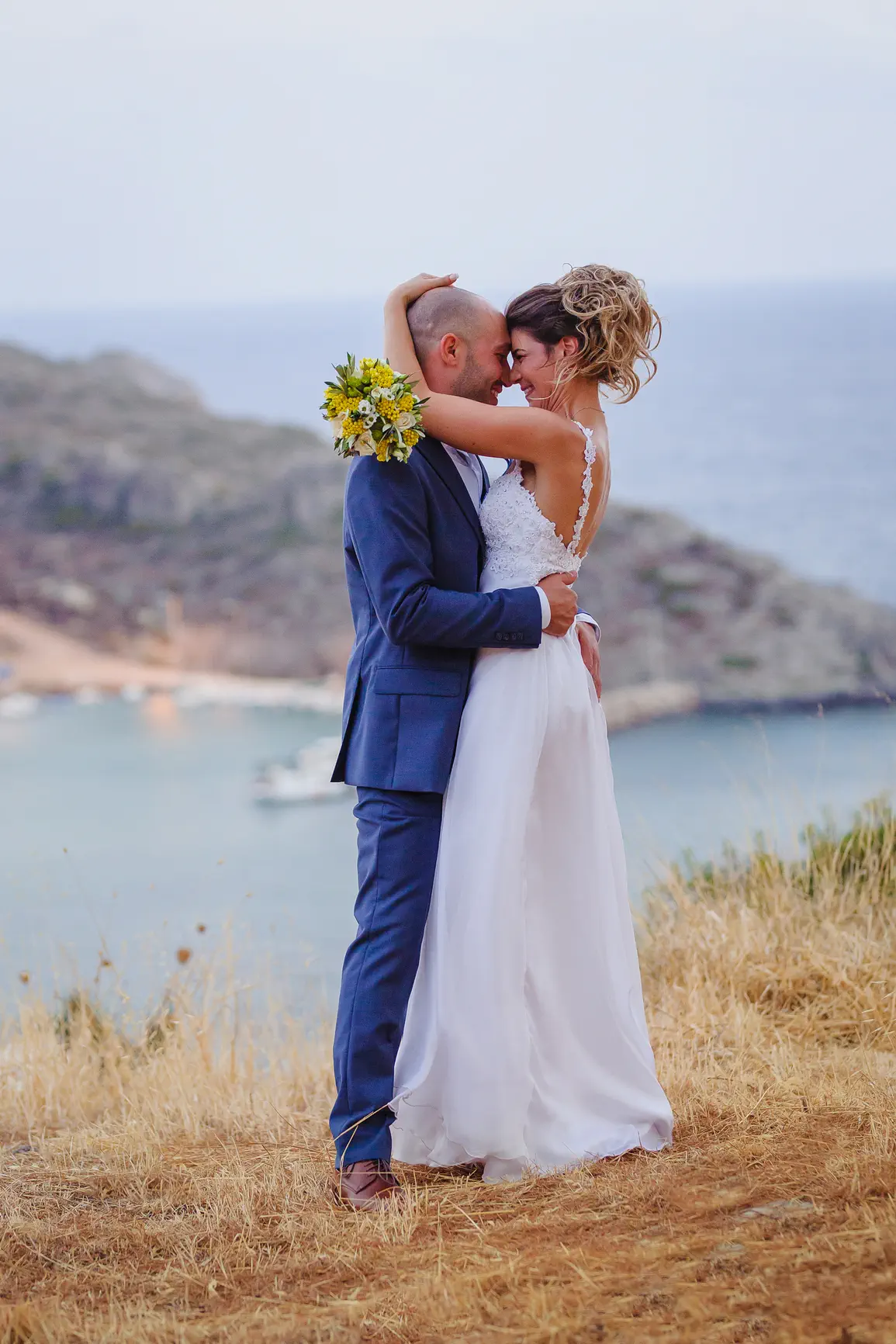 The wedding of Stratis and Thomaïs in the enchanting Kythera was a celebration of love that combined the history of the island with the cool breeze of the Aegean Sea. Their day began with a romantic prelude: an unforgettable photo shoot at the imposing Chora Castle. Among the centuries-old stones and with a panoramic view of the island spreading at their feet, Stratis and Thomais shared tender moments before the big celebration began. These photos captured their anticipation, connection and love against the backdrop of Kythera’s rich history.