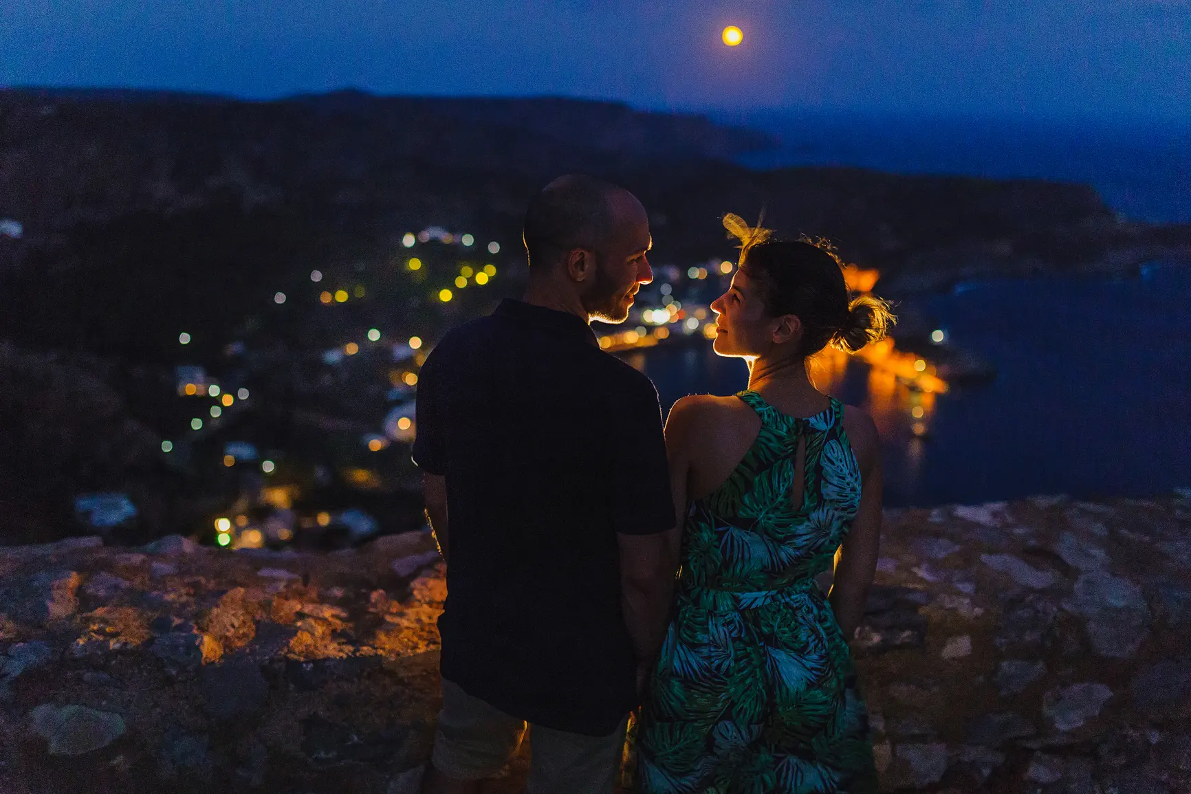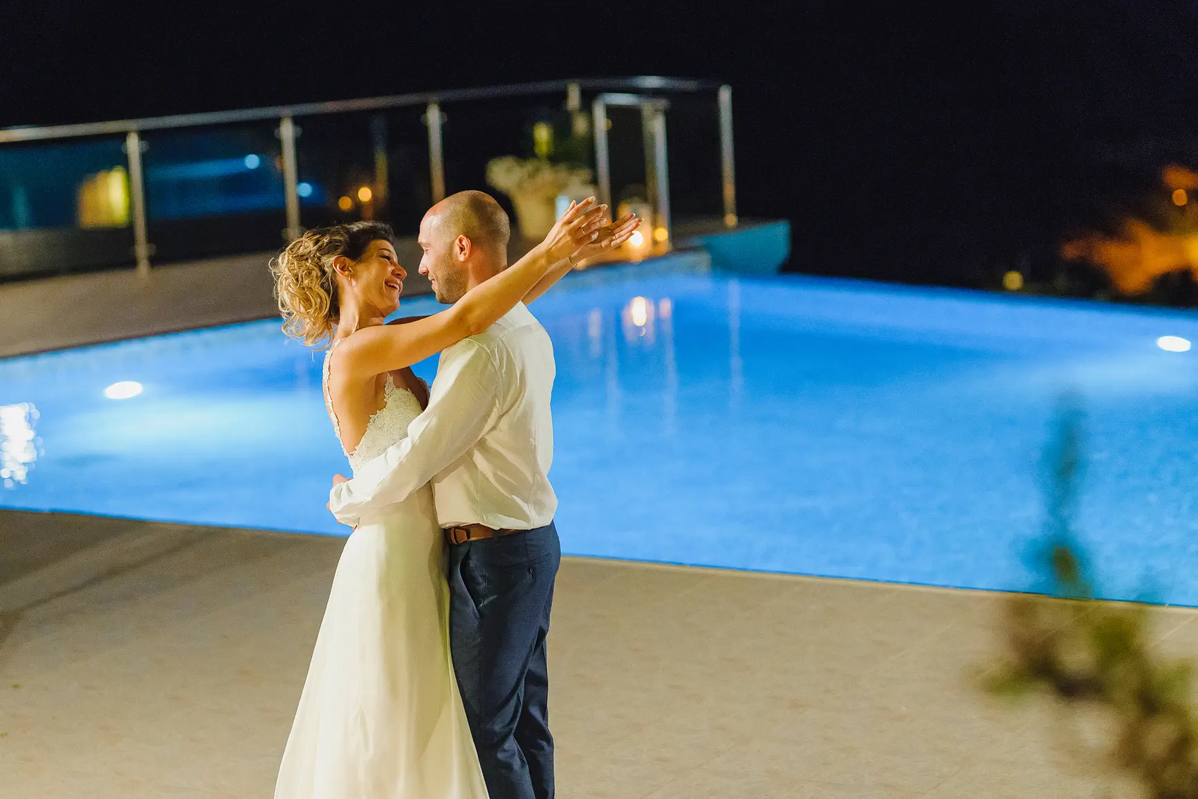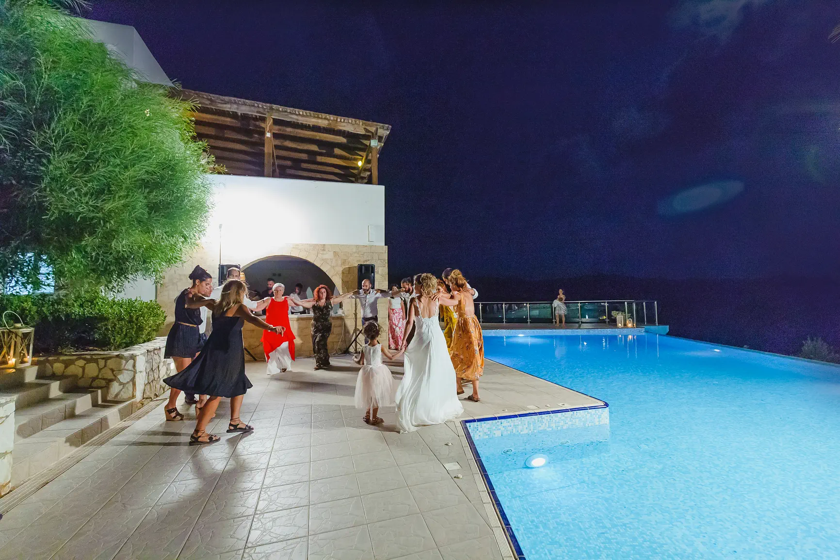 The reception that followed in Kapsali was a real feast, full of music, dancing, local flavours and countless wishes. The moon was reflected in the sea, creating a magical backdrop for the couple’s first dance and the moments of joy they shared with their loved ones.