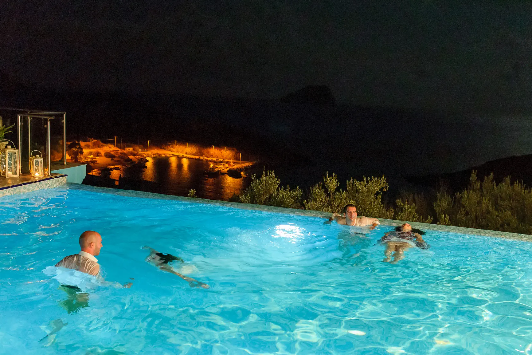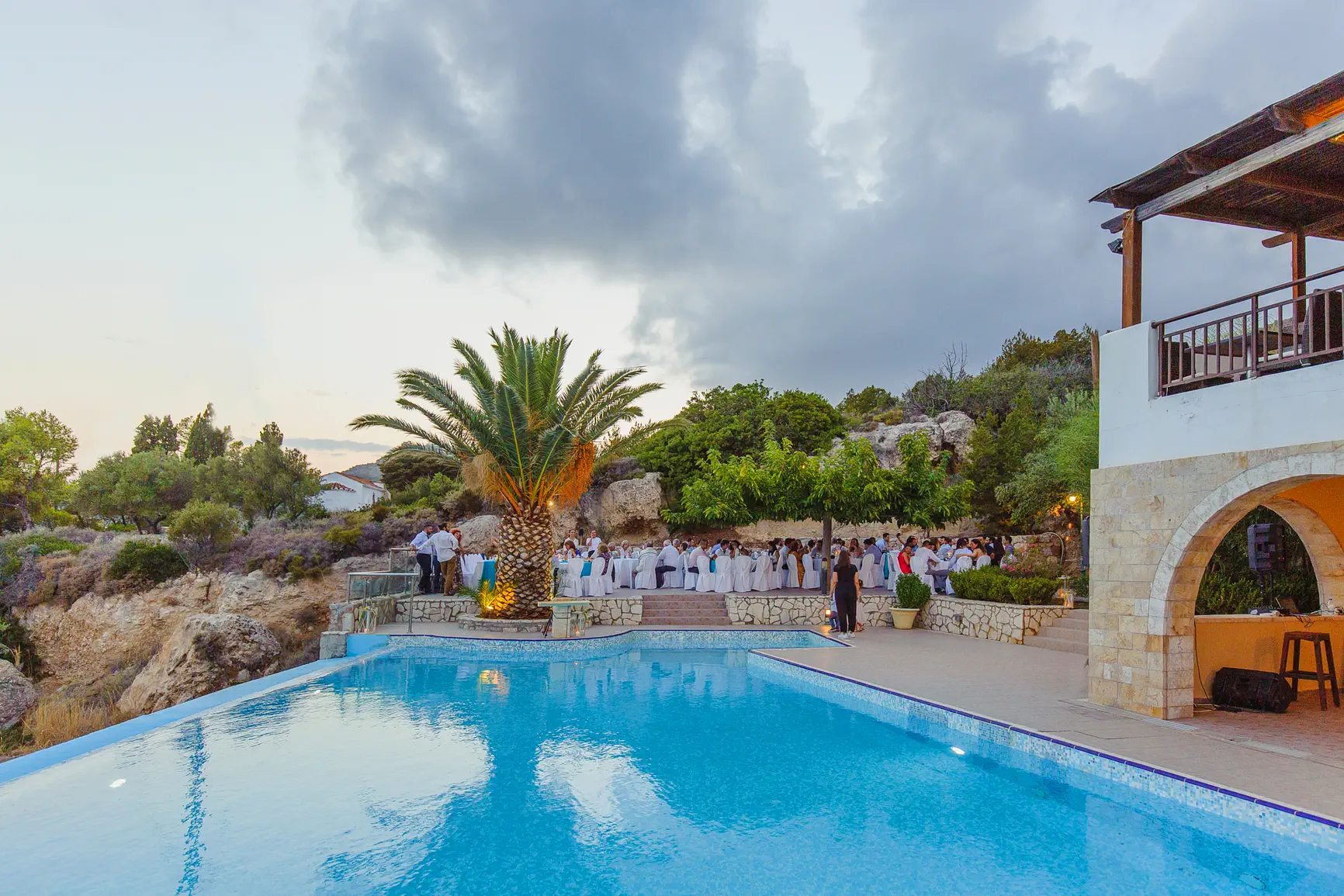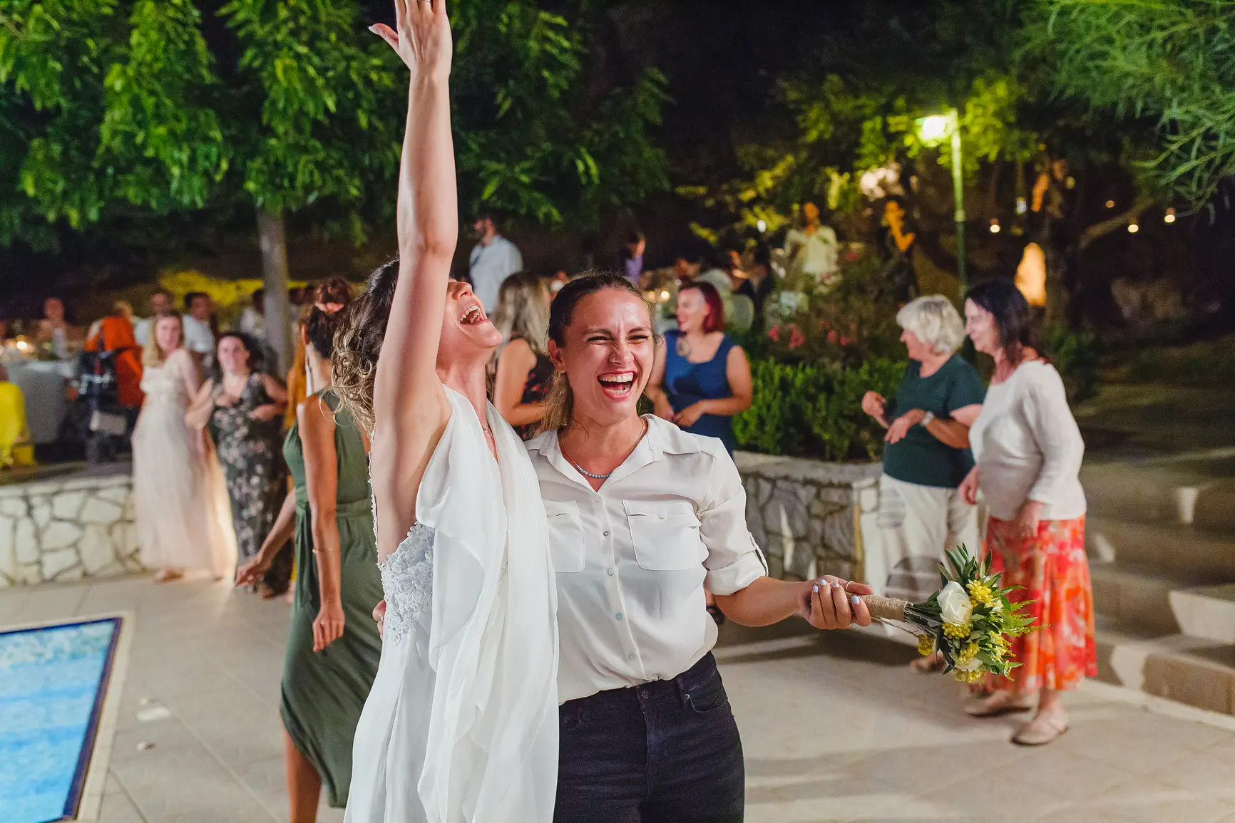 The reception that followed in Kapsali was a real feast, full of music, dancing, local flavours and countless wishes. The moon was reflected in the sea, creating a magical backdrop for the couple’s first dance and the moments of joy they shared with their loved ones.