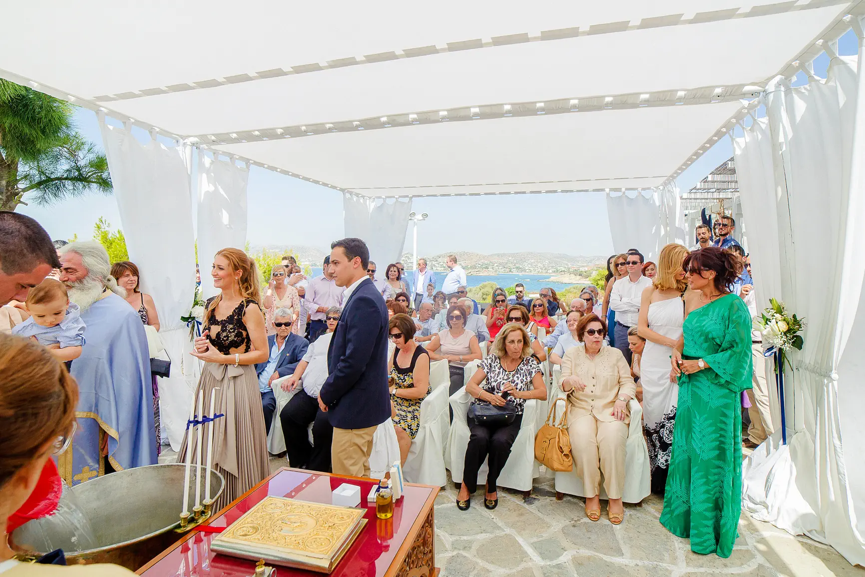 Η ηλιόλουστη βάπτιση του μικρού Βάιου στο μαγευτικό Grand Resort Lagonissi ήταν μια γιορτή αγάπης και τρυφερών συναισθημάτων. Η συγκίνηση των γονιών και των νονών κορυφώθηκε κατά τη διάρκεια του μυστηρίου, καθώς ο μικρός δεχόταν την ευλογία, λουσμένος στο φως. Το υπέροχο σκηνικό δίπλα στη θάλασσα πλαισίωσε ιδανικά τη χαρά της ημέρας, δημιουργώντας μια αξέχαστη ατμόσφαιρα και πολύτιμες αναμνήσεις για την οικογένεια και τους φίλους.