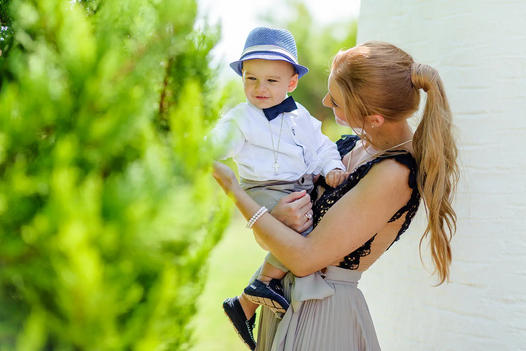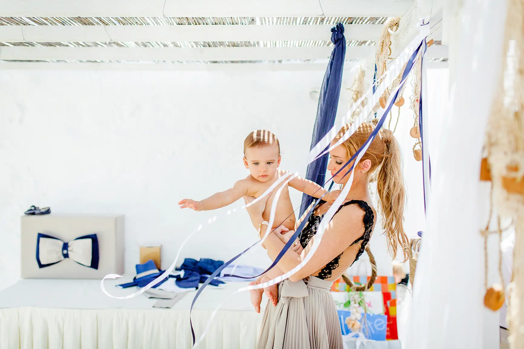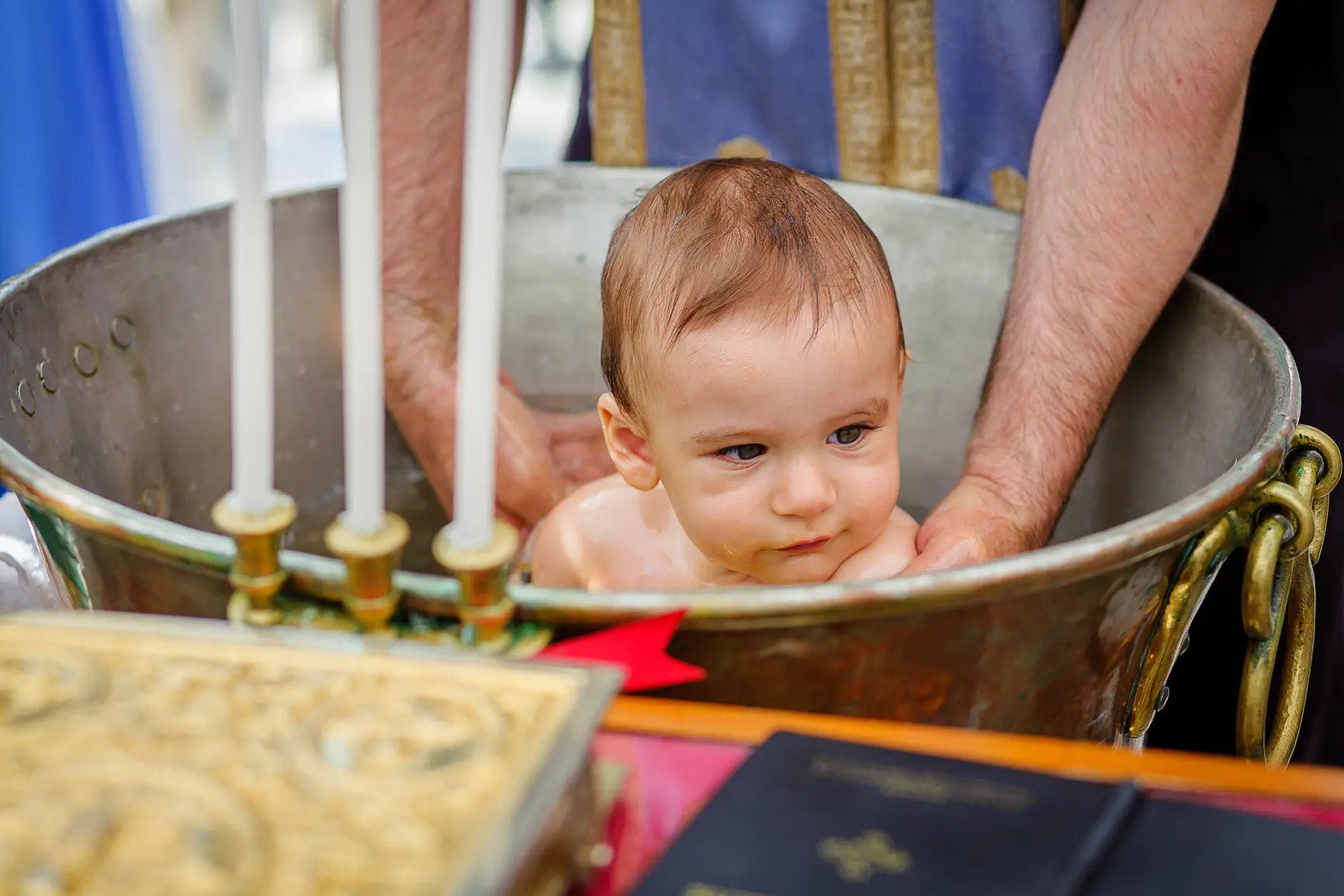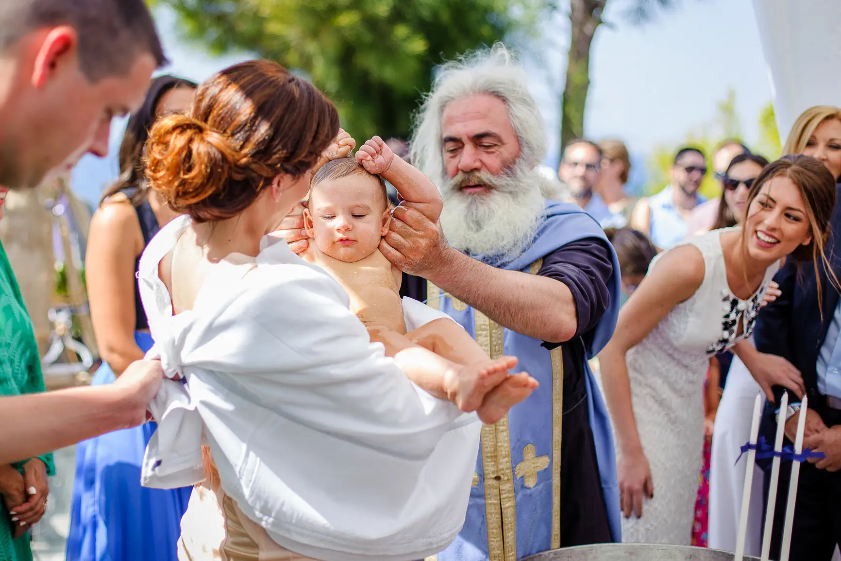Το σκηνικό, από μόνο του, προσέδιδε μια αύρα κομψότητας και γαλήνης. Η τελετή, που έλαβε χώρα στο γραφικό εκκλησάκι του resort, ήταν γεμάτη κατανυκτική συγκίνηση. Η στιγμή που ο Βάιος βυθίστηκε στο αγιασμένο νερό της κολυμπήθρας, αγκαλιάστηκε από τους τρυφερούς νονούς του και φόρεσε τα λευκά, αγγελικά του ρουχαλάκια, ήταν η κορύφωση μιας ημέρας γεμάτης συμβολισμούς και αγάπη. Τα βλέμματα των γονιών του ακτινοβολούσαν περηφάνια και τρυφερότητα, ενώ οι παππούδες, οι συγγενείς και οι φίλοι μοιράζονταν χαμόγελα και δάκρυα χαράς, δημιουργώντας μια ατμόσφαιρα βαθιάς οικογενειακής σύνδεσης.