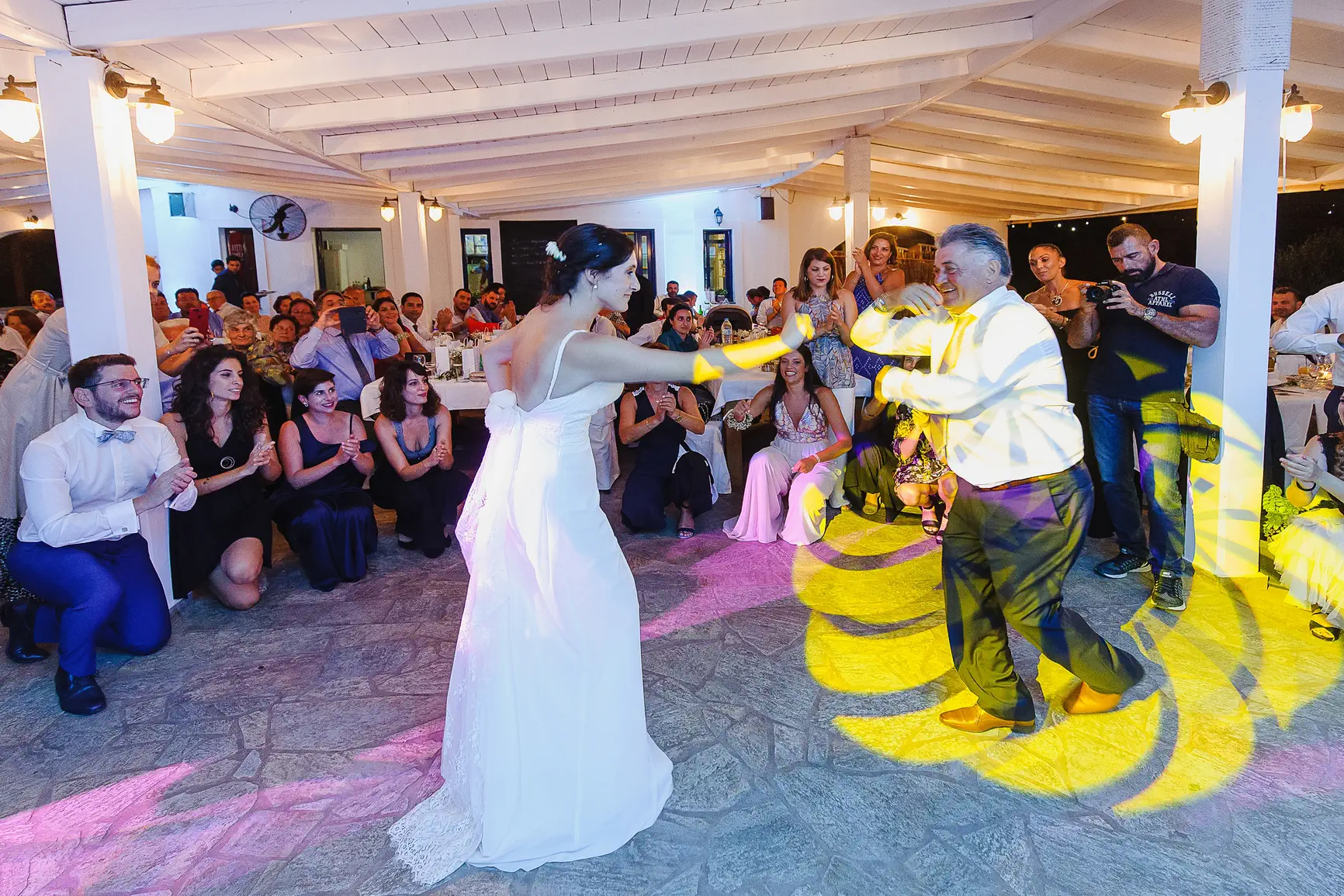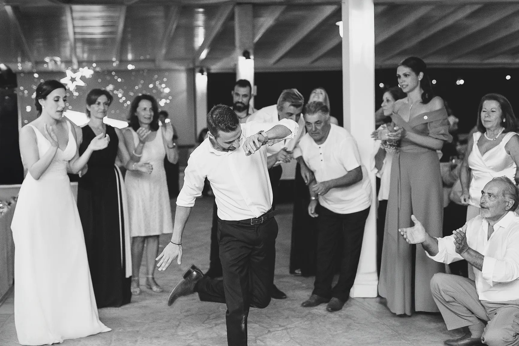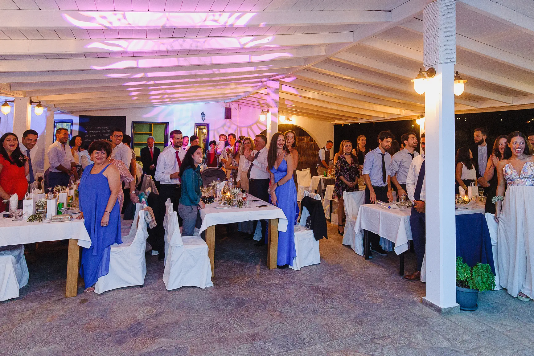 Η μουσική πλημμύρισε τον αέρα, τα γέλια αντηχούσαν, και οι καλεσμένοι, παρασυρμένοι από την ενέργεια του ζευγαριού, χόρευαν ασταμάτητα με την άμμο ανάμεσα στα δάχτυλα των ποδιών. Ο Παντελής και η Ελένη, πιο ευτυχισμένοι από ποτέ, ήταν η ψυχή του πάρτι, μοιράζοντας τη χαρά τους με όλους. Ήταν ένας γάμος που συνδύασε την ιερή συγκίνηση με την αχαλίνωτη διασκέδαση, μια γιορτή αγάπης που θα μείνει ανεξίτηλα χαραγμένη στις μνήμες όλων όσων την έζησαν.