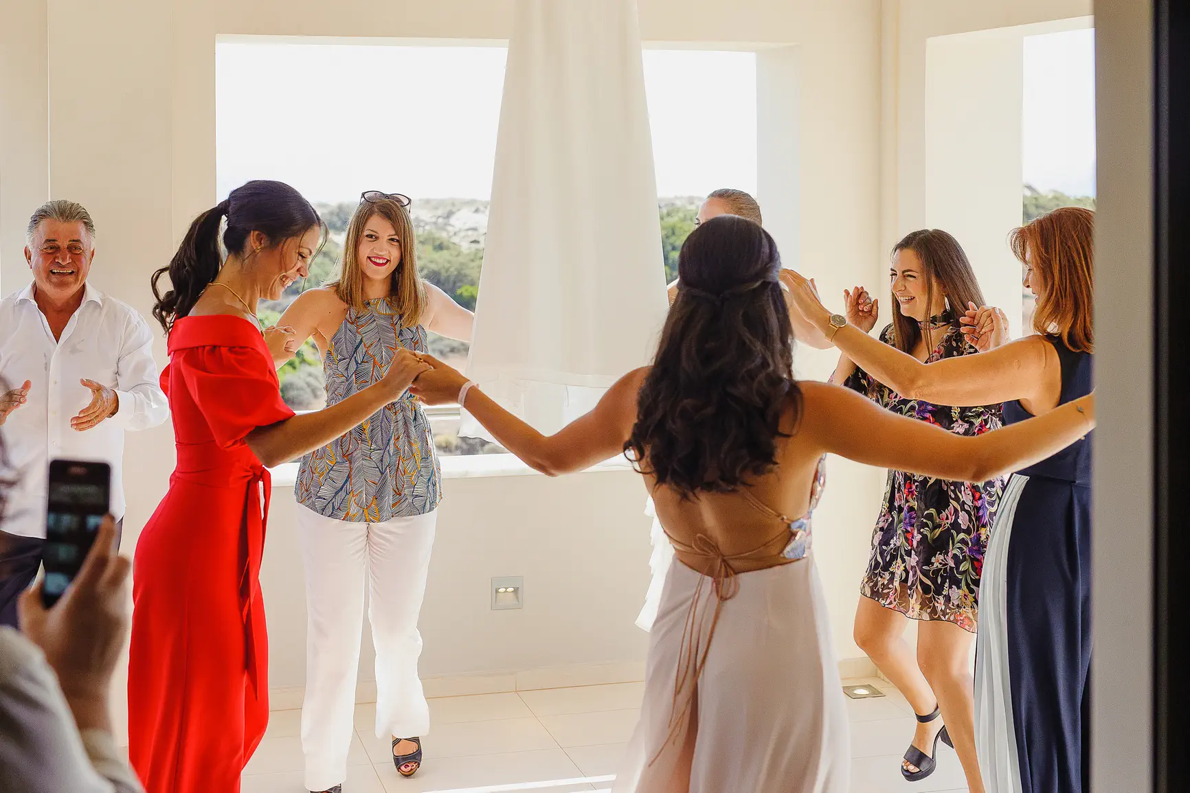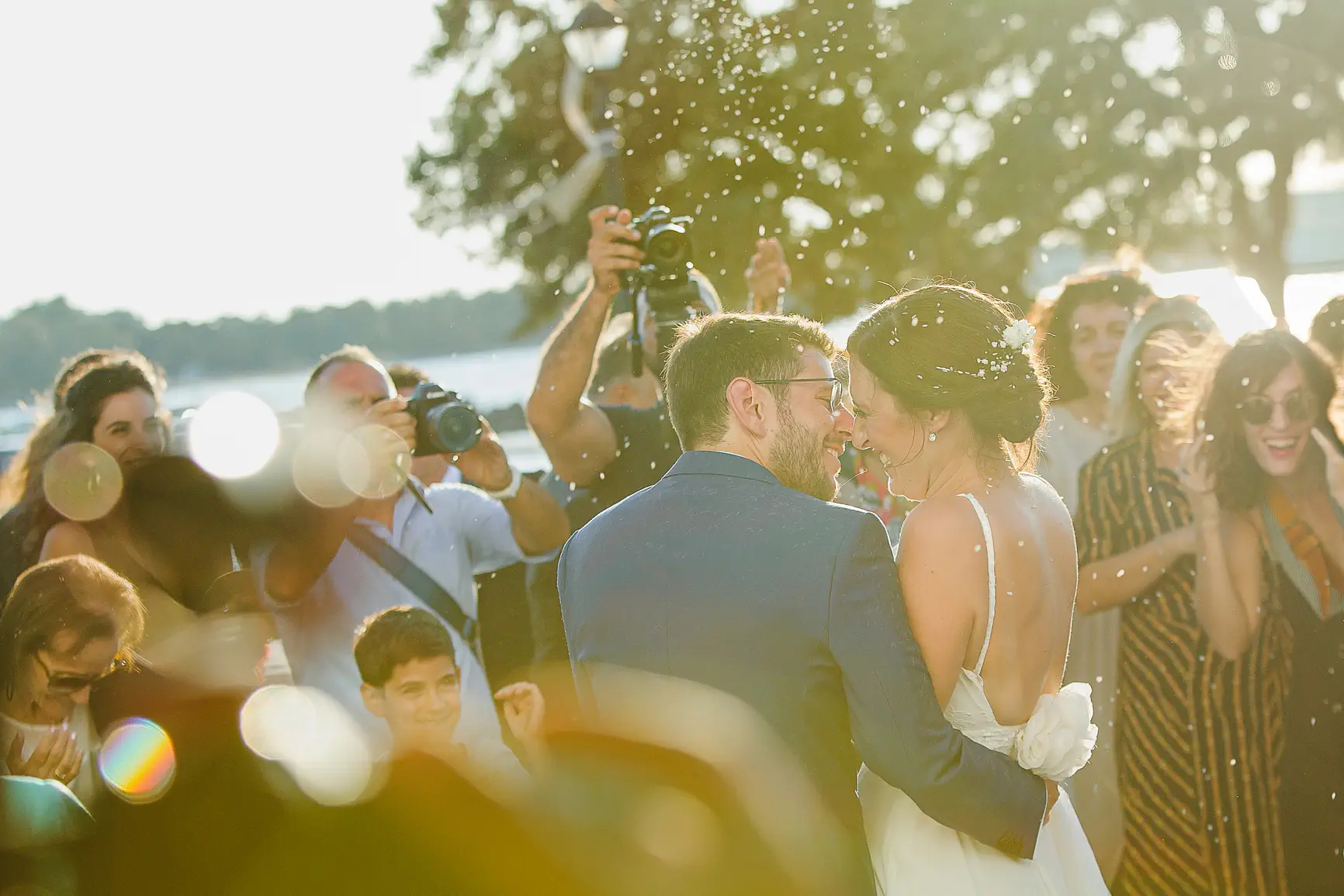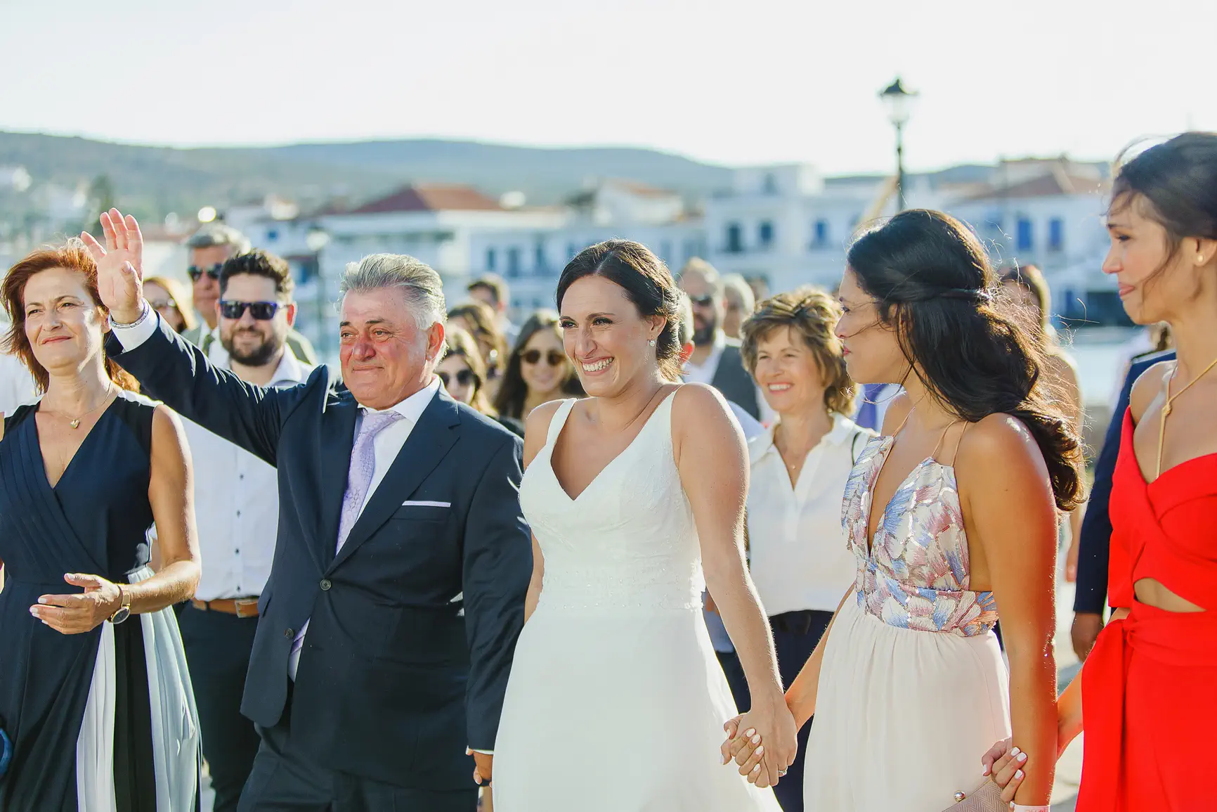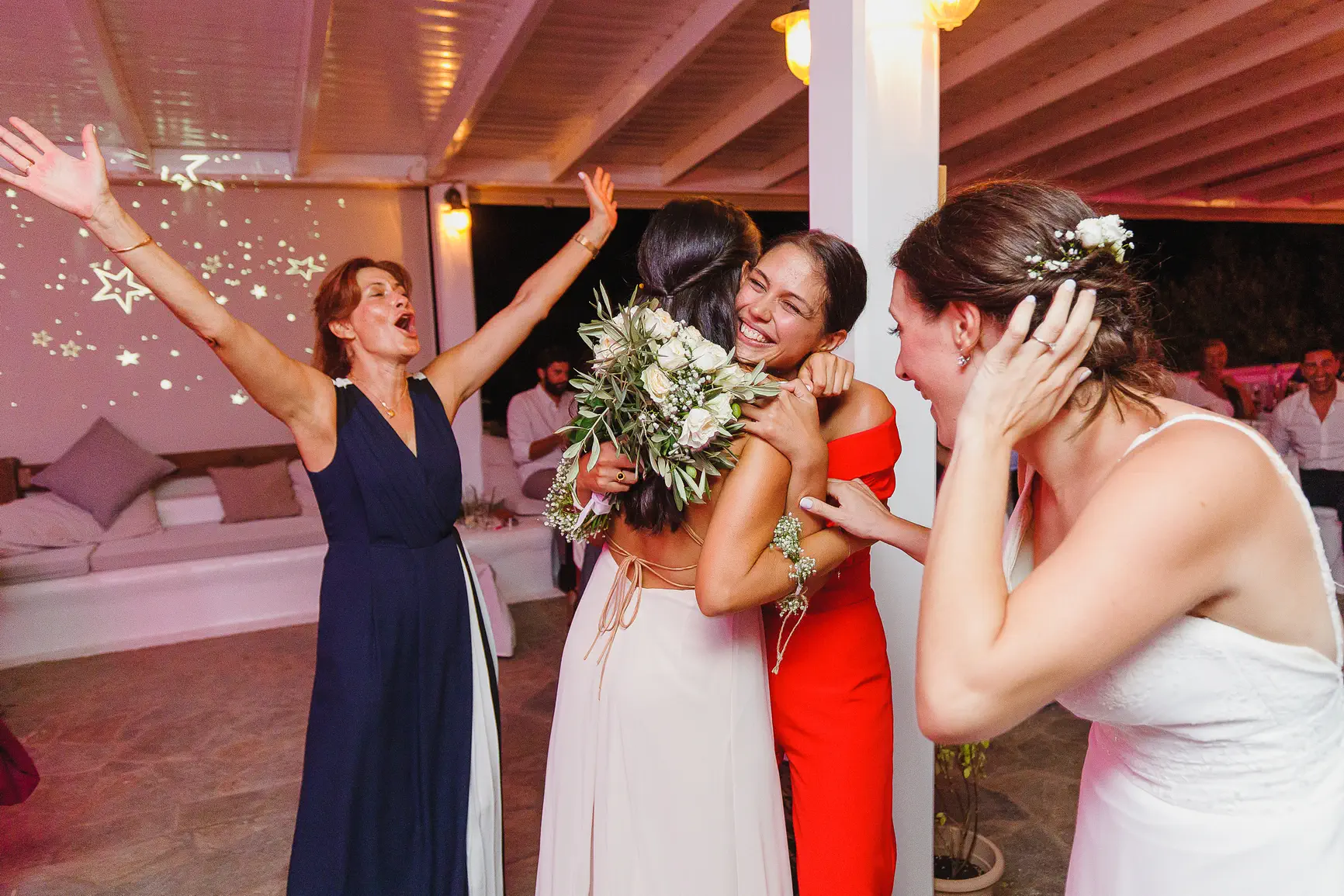 Η μουσική πλημμύρισε τον αέρα, τα γέλια αντηχούσαν, και οι καλεσμένοι, παρασυρμένοι από την ενέργεια του ζευγαριού, χόρευαν ασταμάτητα με την άμμο ανάμεσα στα δάχτυλα των ποδιών. Ο Παντελής και η Ελένη, πιο ευτυχισμένοι από ποτέ, ήταν η ψυχή του πάρτι, μοιράζοντας τη χαρά τους με όλους. Ήταν ένας γάμος που συνδύασε την ιερή συγκίνηση με την αχαλίνωτη διασκέδαση, μια γιορτή αγάπης που θα μείνει ανεξίτηλα χαραγμένη στις μνήμες όλων όσων την έζησαν.