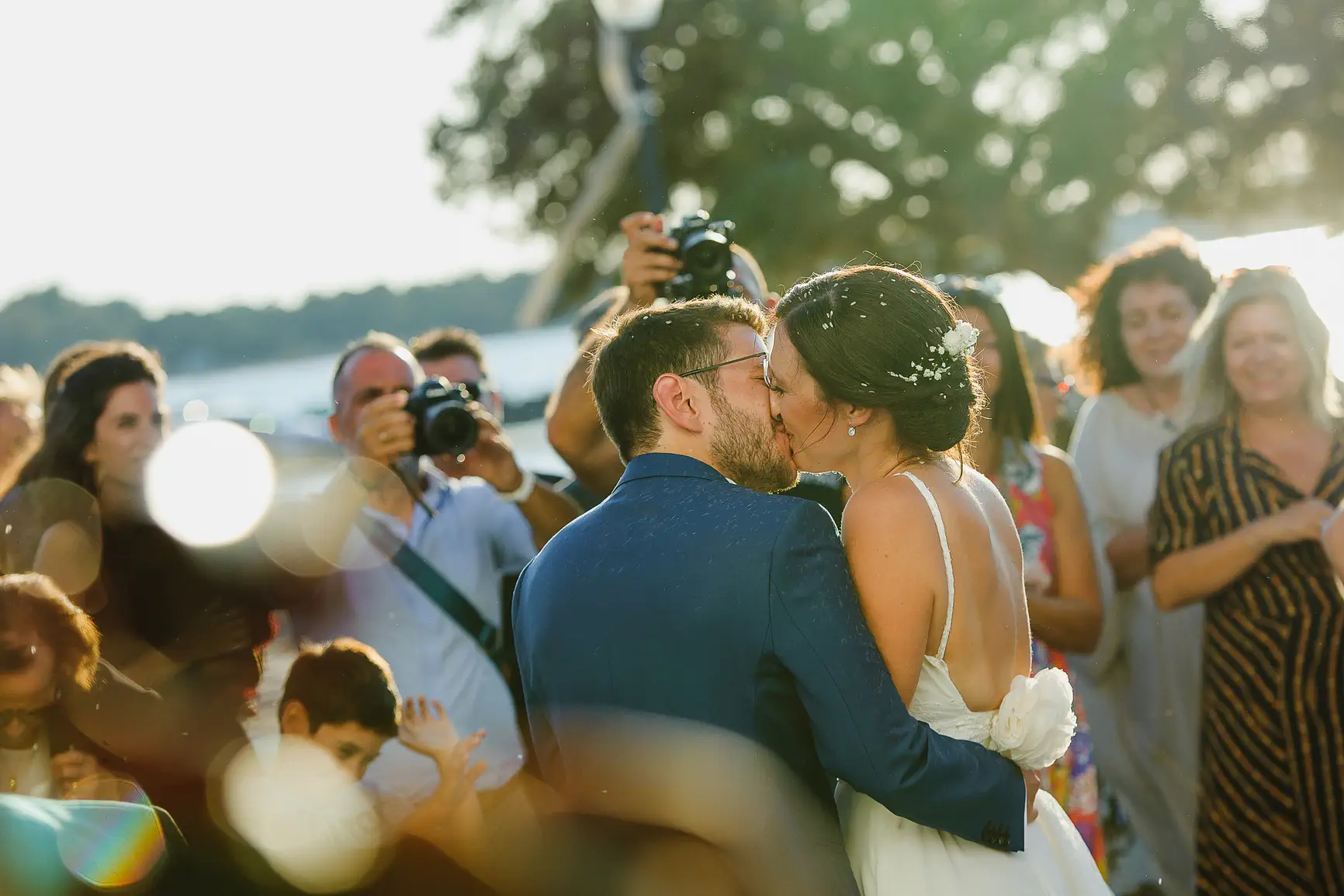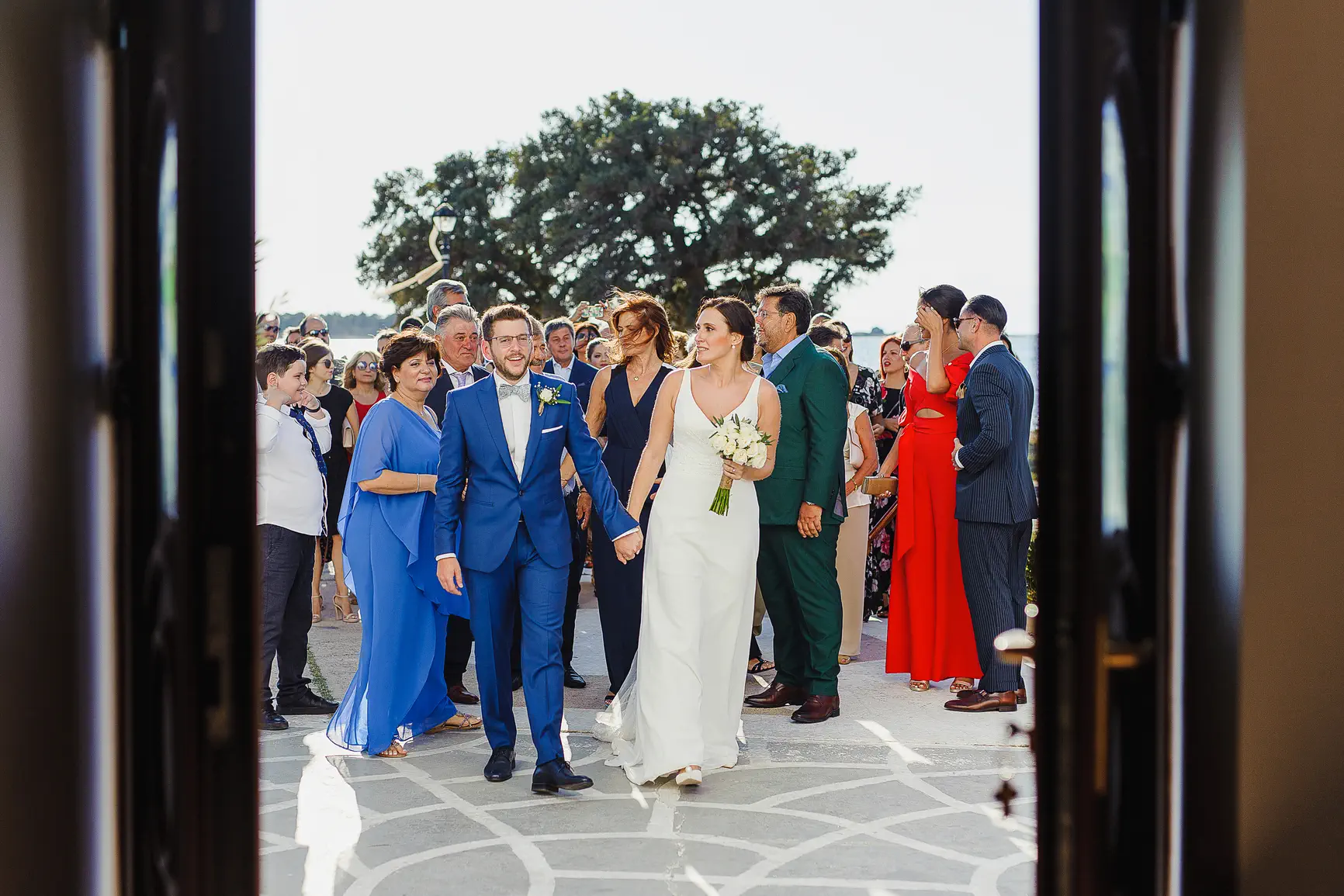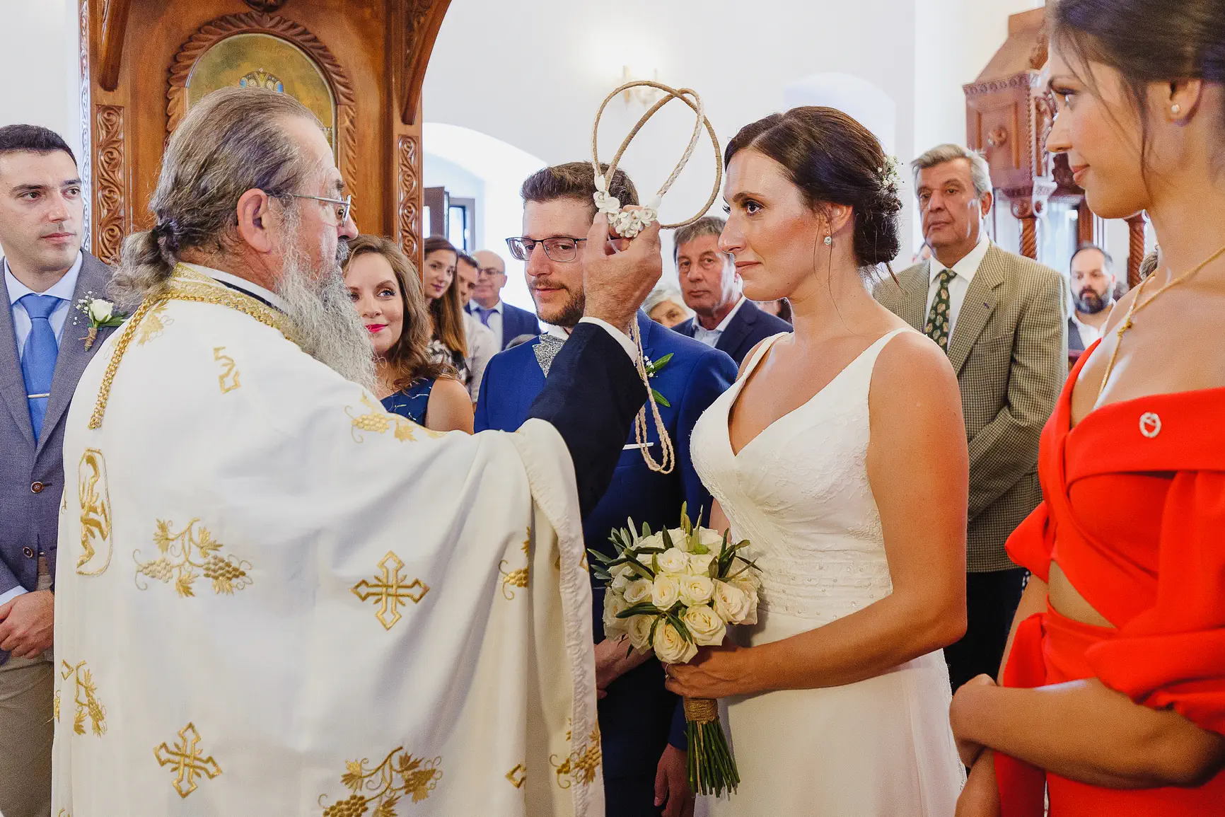 Στην καρδιά του καλοκαιριού, η Ελαφόνησος φόρεσε τα γιορτινά της για να υποδεχτεί τον γάμο του Παντελή και της Ελένης, μια ένωση ψυχών που σφραγίστηκε με τον πιο μαγευτικό τρόπο. Το γραφικό εξωκλήσι του Αγίου Νικολάου, σκαρφαλωμένο κυριολεκτικά πάνω στα βράχια, με τα κύματα να σιγοψιθυρίζουν στα πόδια του, αποτέλεσε το ιδανικό σκηνικό. Ο ήλιος έκλεινε το μάτι στο ζευγάρι καθώς αντάλλαξαν όρκους αιώνιας αγάπης, με φόντο το απέραντο γαλάζιο του Αιγαίου. Η συγκίνηση ήταν ζωγραφισμένη στα πρόσωπα όλων. Δάκρυα χαράς κυλούσαν από τους γονείς και τους στενούς φίλους, καθώς ο Παντελής κοιτούσε την Ελένη με μια αγάπη που ακτινοβολούσε, κι εκείνη του χαμογελούσε με μια τρυφερότητα που ζέσταινε τις καρδιές. Κάθε λέξη, κάθε βλέμμα, κάθε άγγιγμα ήταν φορτισμένο με συναισθήματα που ξεχείλιζαν, κάνοντας την ατμόσφαιρα σχεδόν ηλεκτρισμένη από την αγνότητα της στιγμής.