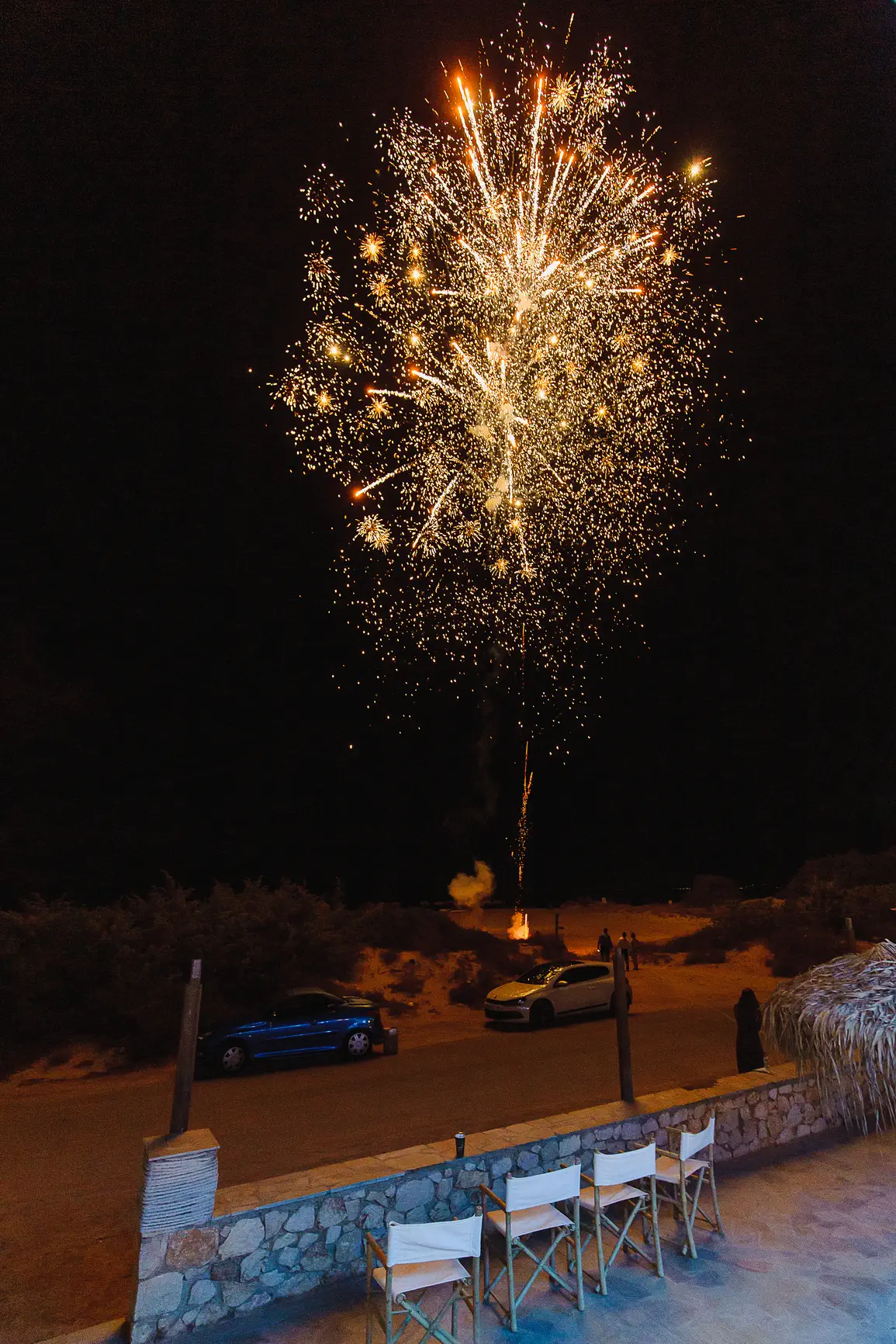 Ο παπάς, με λόγια σοφά και γεμάτα νόημα, ευλόγησε την ένωσή τους, ενώ οι κουμπάροι στάθηκαν περήφανα στο πλευρό τους. Και μετά την ιερή τελετή, η νύχτα μεταμορφώθηκε! Δίπλα στην αμμουδερή παραλία, κάτω από τον έναστρο ουρανό της Ελαφονήσου, στήθηκε ένα ξέφρενο πάρτι που κράτησε μέχρι τις πρώτες πρωινές ώρες.