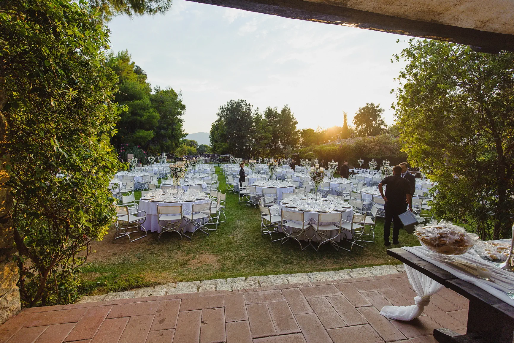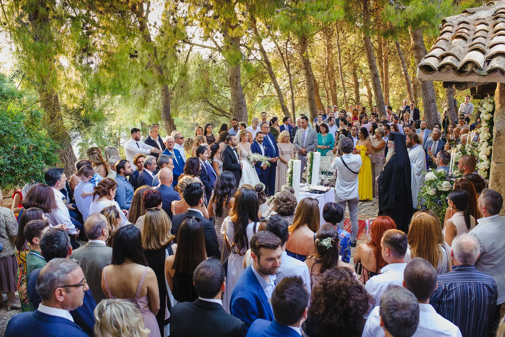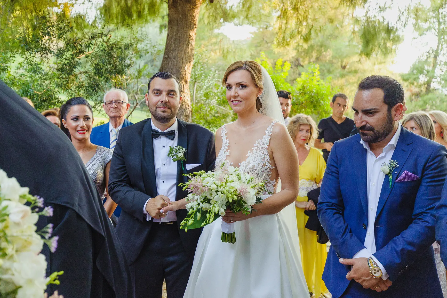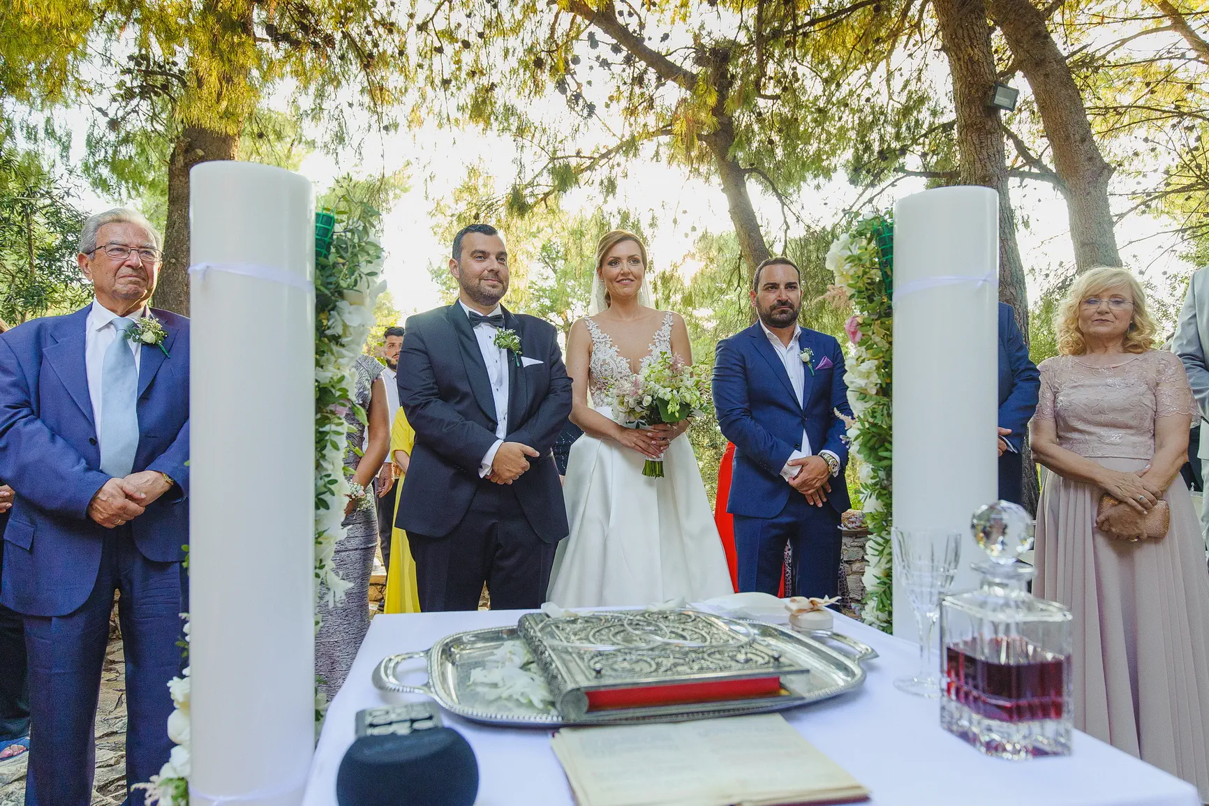 Η τελετή, λουσμένη στο φυσικό φως, ήταν γεμάτη συγκίνηση καθώς το ζευγάρι αντάλλαξε όρκους αιώνιας αγάπης και αφοσίωσης, περιτριγυρισμένο από τα αγαπημένα του πρόσωπα. Η ατμόσφαιρα ήταν μαγική, με τη διακόσμηση να εναρμονίζεται τέλεια με τη φυσική ομορφιά και την κλασική αισθητική του χώρου.