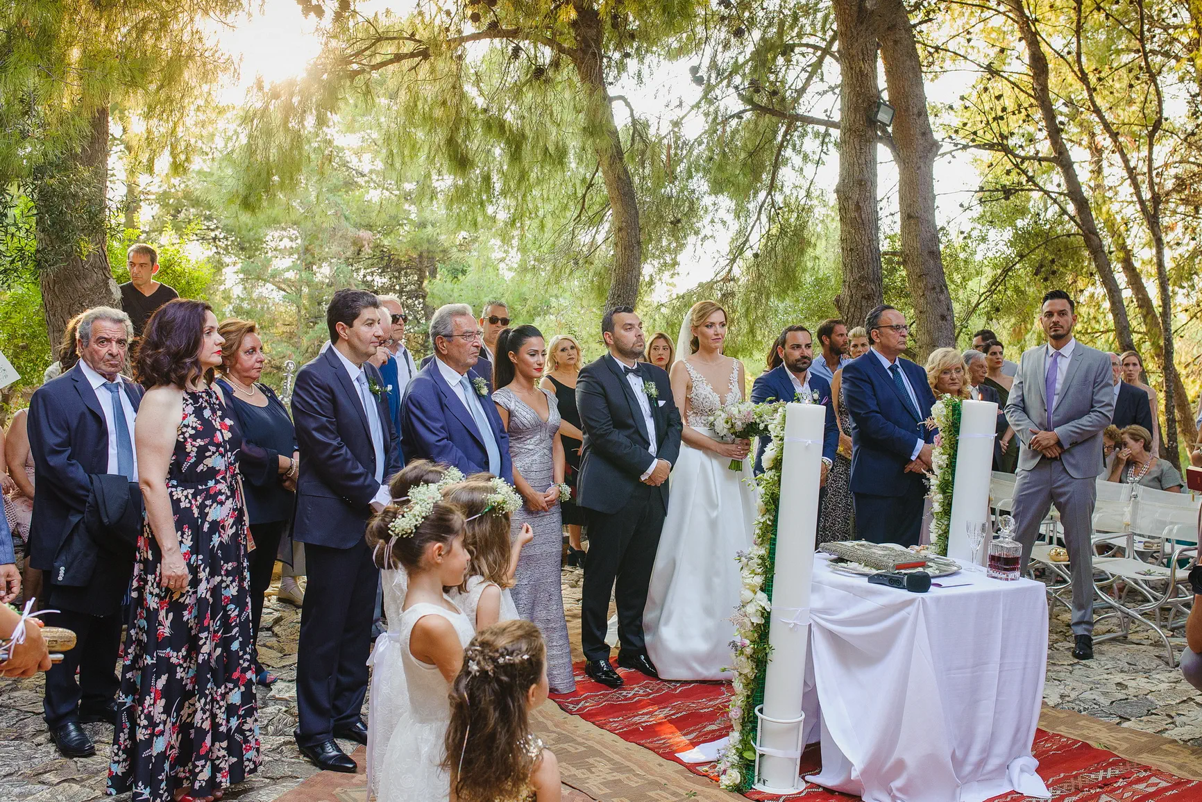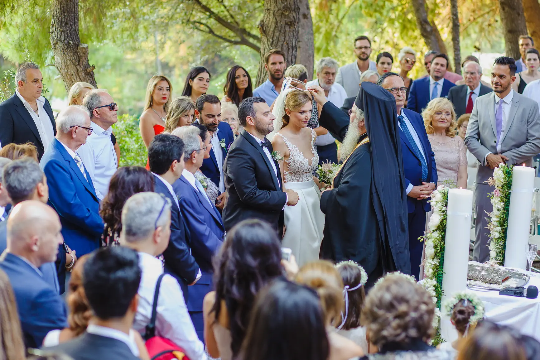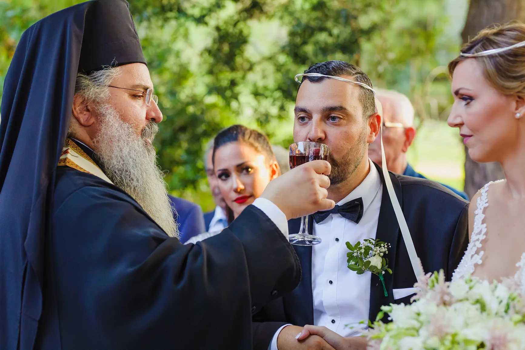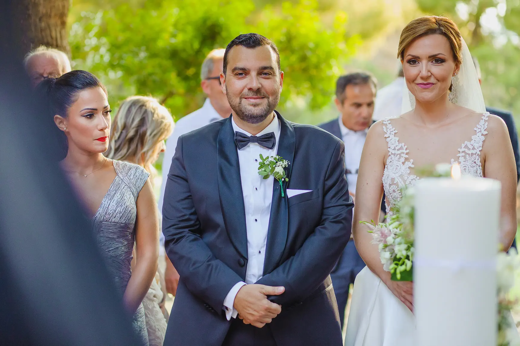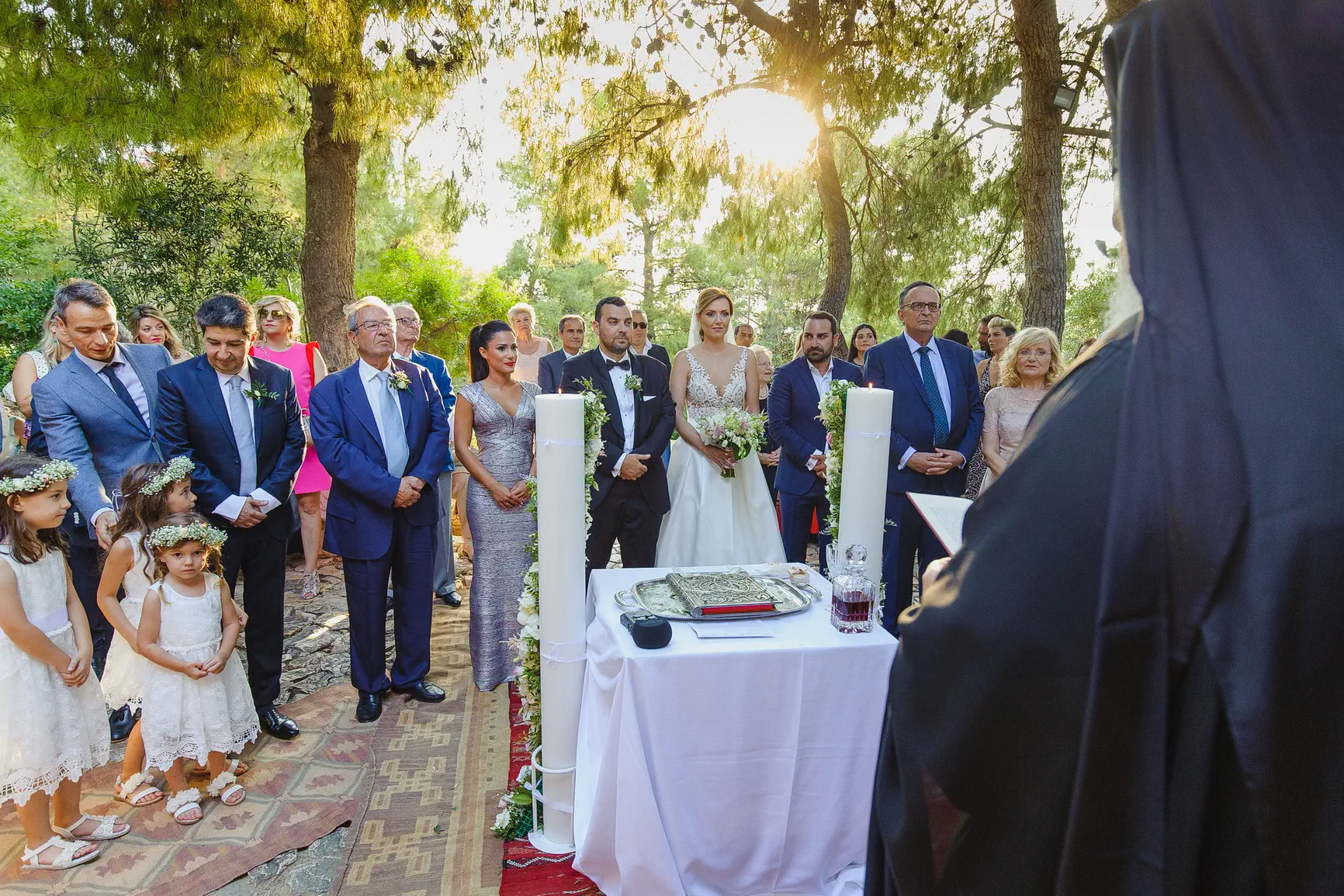 Η τελετή, λουσμένη στο φυσικό φως, ήταν γεμάτη συγκίνηση καθώς το ζευγάρι αντάλλαξε όρκους αιώνιας αγάπης και αφοσίωσης, περιτριγυρισμένο από τα αγαπημένα του πρόσωπα. Η ατμόσφαιρα ήταν μαγική, με τη διακόσμηση να εναρμονίζεται τέλεια με τη φυσική ομορφιά και την κλασική αισθητική του χώρου.