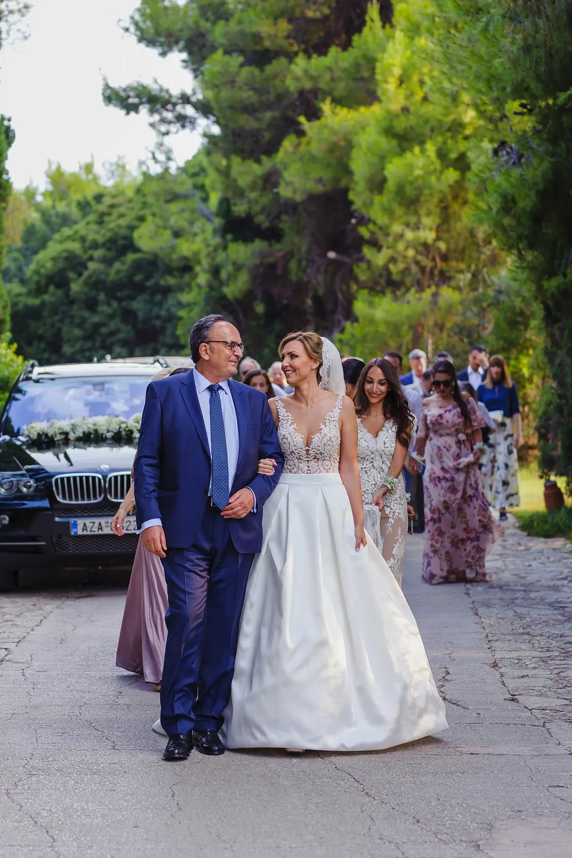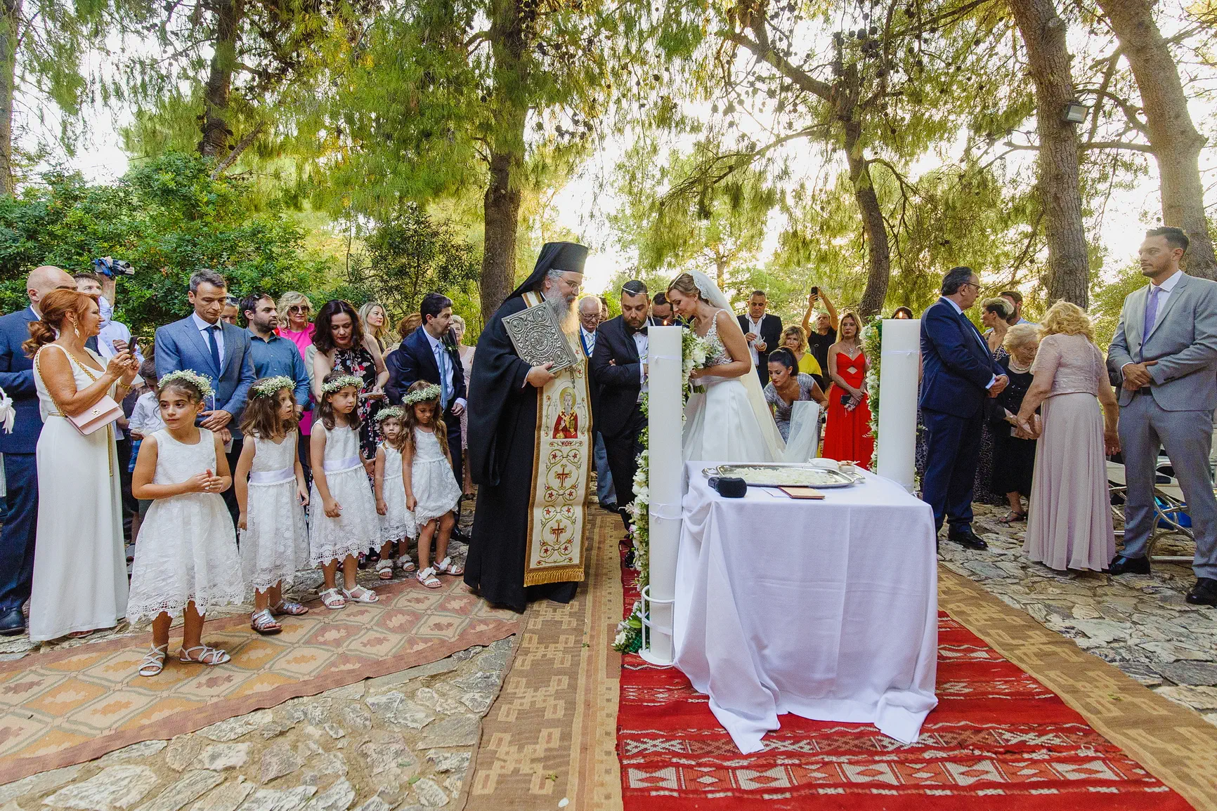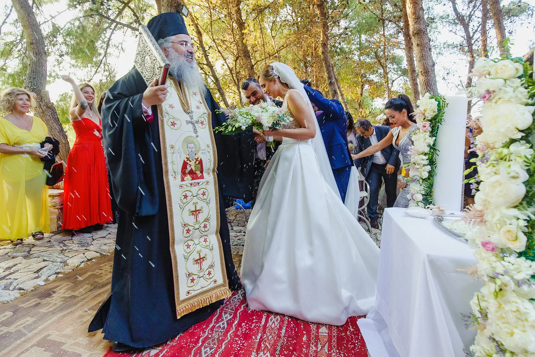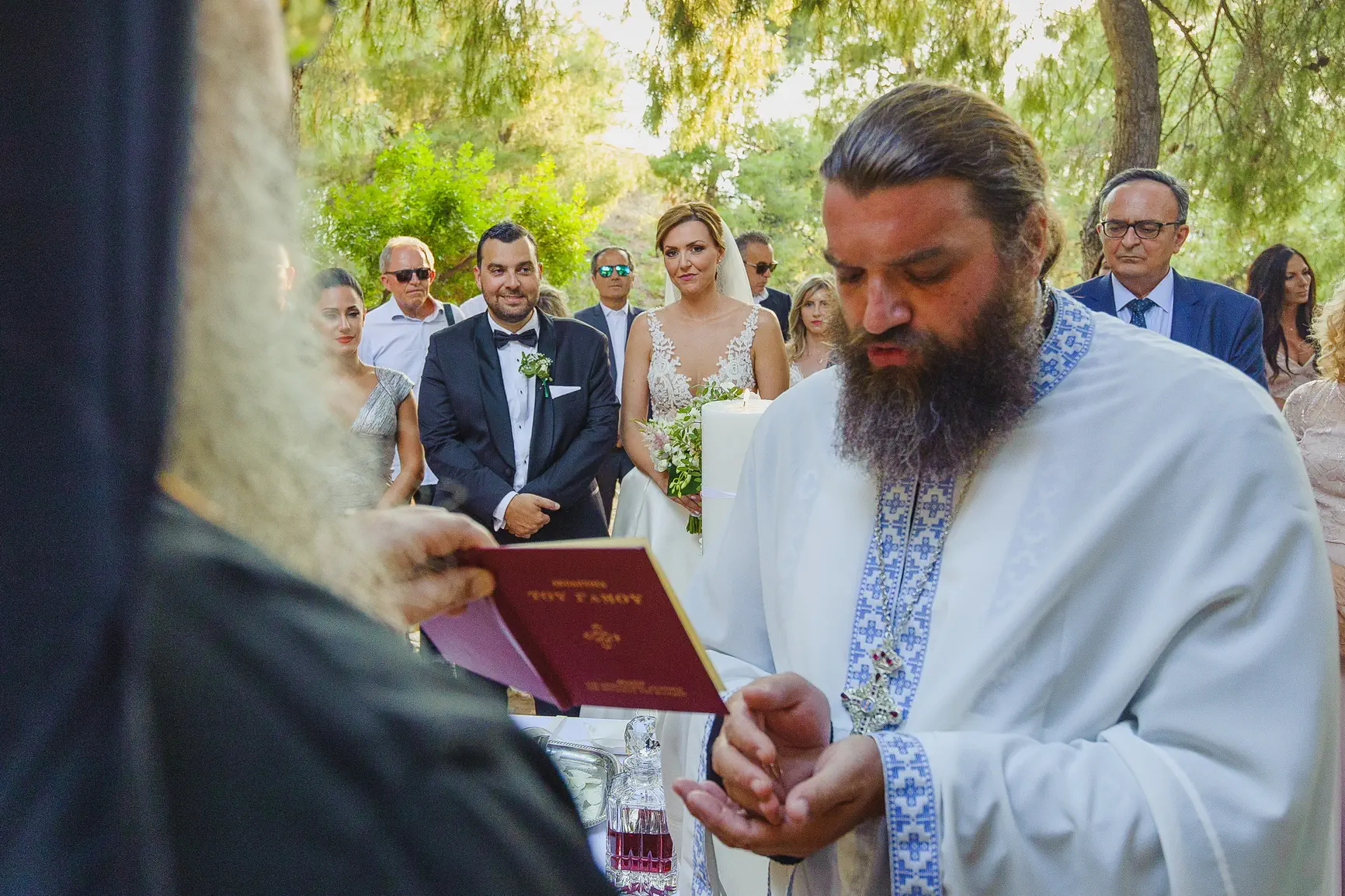 Η τελετή, λουσμένη στο φυσικό φως, ήταν γεμάτη συγκίνηση καθώς το ζευγάρι αντάλλαξε όρκους αιώνιας αγάπης και αφοσίωσης, περιτριγυρισμένο από τα αγαπημένα του πρόσωπα. Η ατμόσφαιρα ήταν μαγική, με τη διακόσμηση να εναρμονίζεται τέλεια με τη φυσική ομορφιά και την κλασική αισθητική του χώρου.
