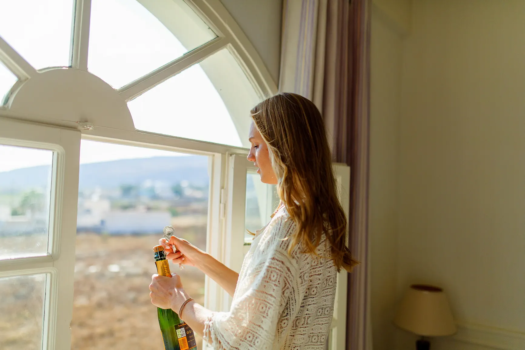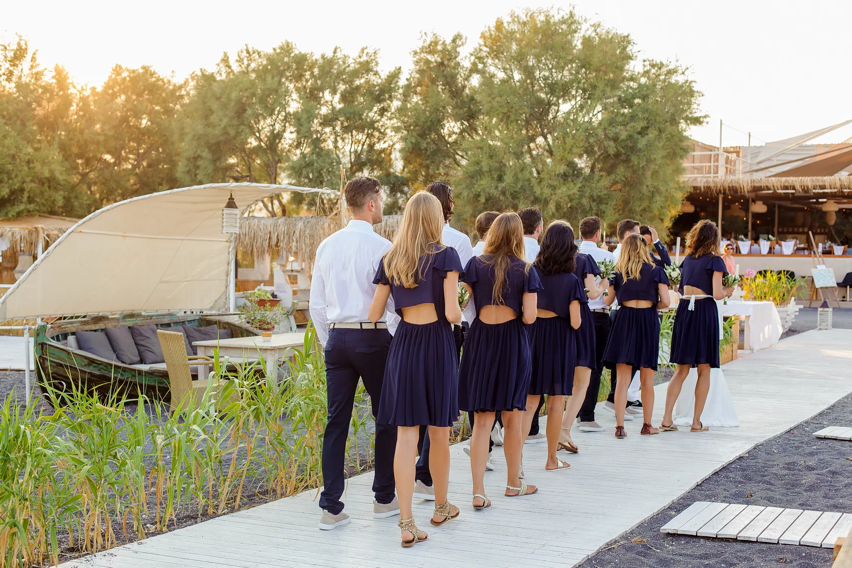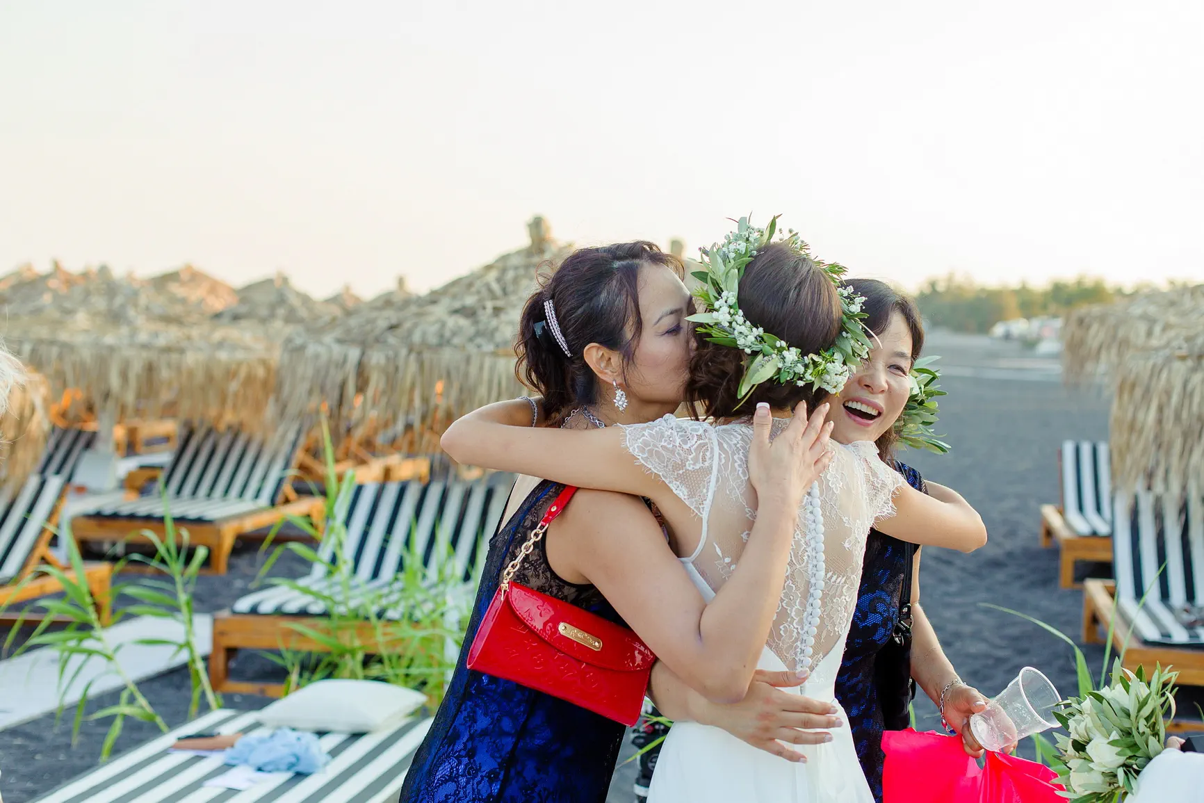 Εκεί, με την απαλή άμμο κάτω από τα πόδια τους και τον ήχο των κυμάτων να συντροφεύει τις καρδιές τους που χτυπούσαν δυνατά, η Stefi και ο Ιάσονας αντάλλαξαν τους πιο τρυφερούς όρκους. Η συγκίνηση ήταν ζωγραφισμένη στα πρόσωπα των αγαπημένων τους, καθώς μοιράζονταν αυτή την βαθιά προσωπική και ταυτόχρονα κοσμοπολίτικη στιγμή. Το φως της Σαντορίνης αγκάλιαζε το ζευγάρι, δημιουργώντας εικόνες απαράμιλλης ομορφιάς, καθώς η αγάπη τους σφραγιζόταν με ένα φιλί, με τον ήλιο να αρχίζει σιγά σιγά την κάθοδό του προς τη θάλασσα.