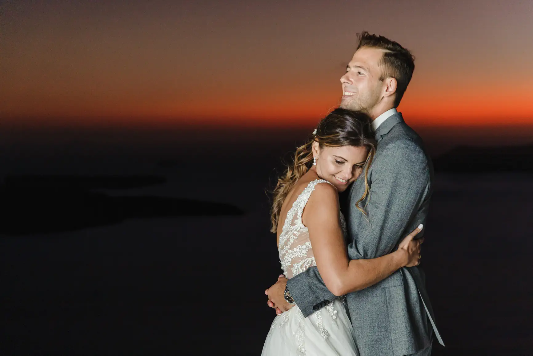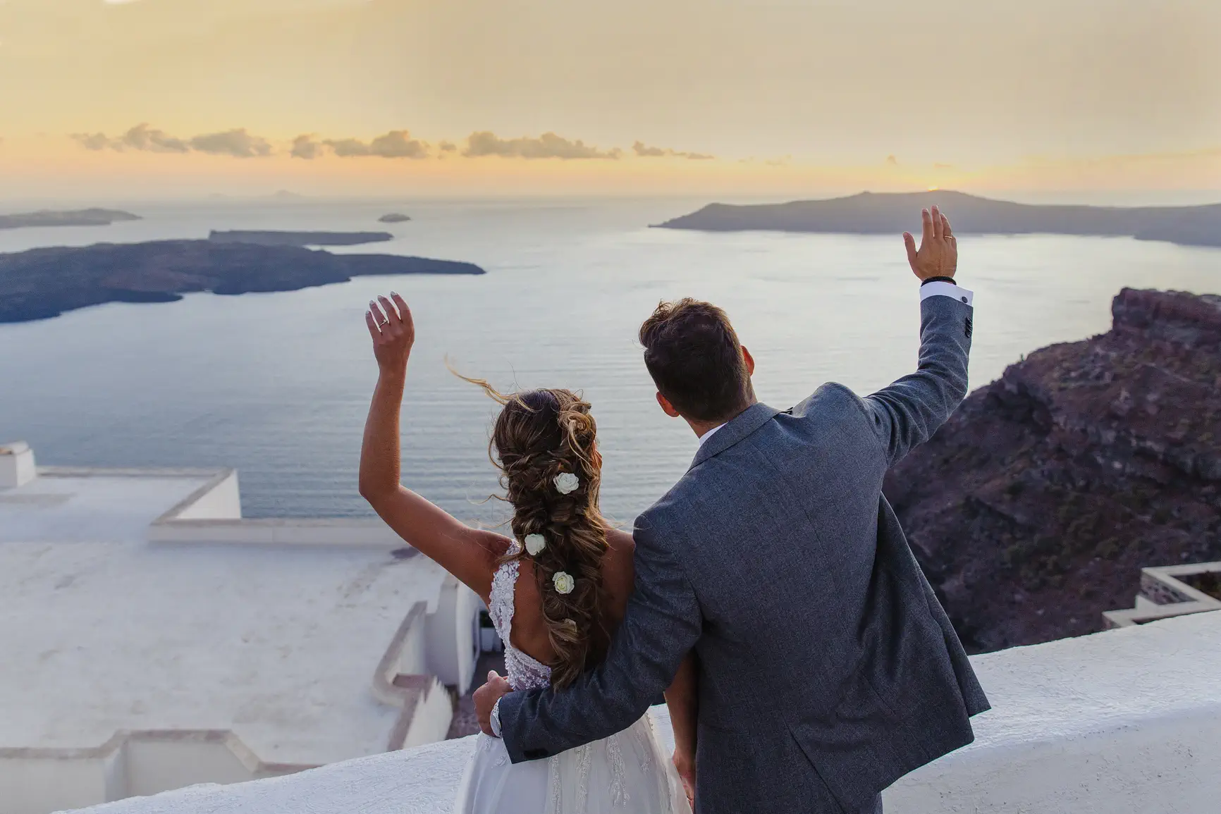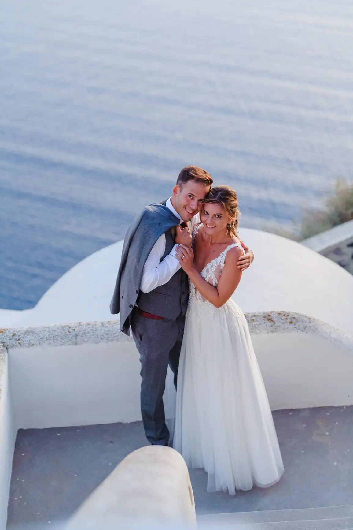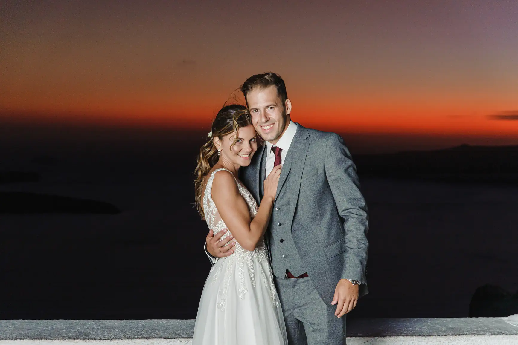 Ο γάμος τους ήταν η απόλυτη ενσάρκωση του ρομαντισμού, μια τέλεια αρμονία μεταξύ της μαγείας της Σαντορίνης και της δύναμης της αγάπης τους. Μια ημέρα που θα μείνει για πάντα χαραγμένη ως η πιο όμορφη αρχή της κοινής τους ζωής.