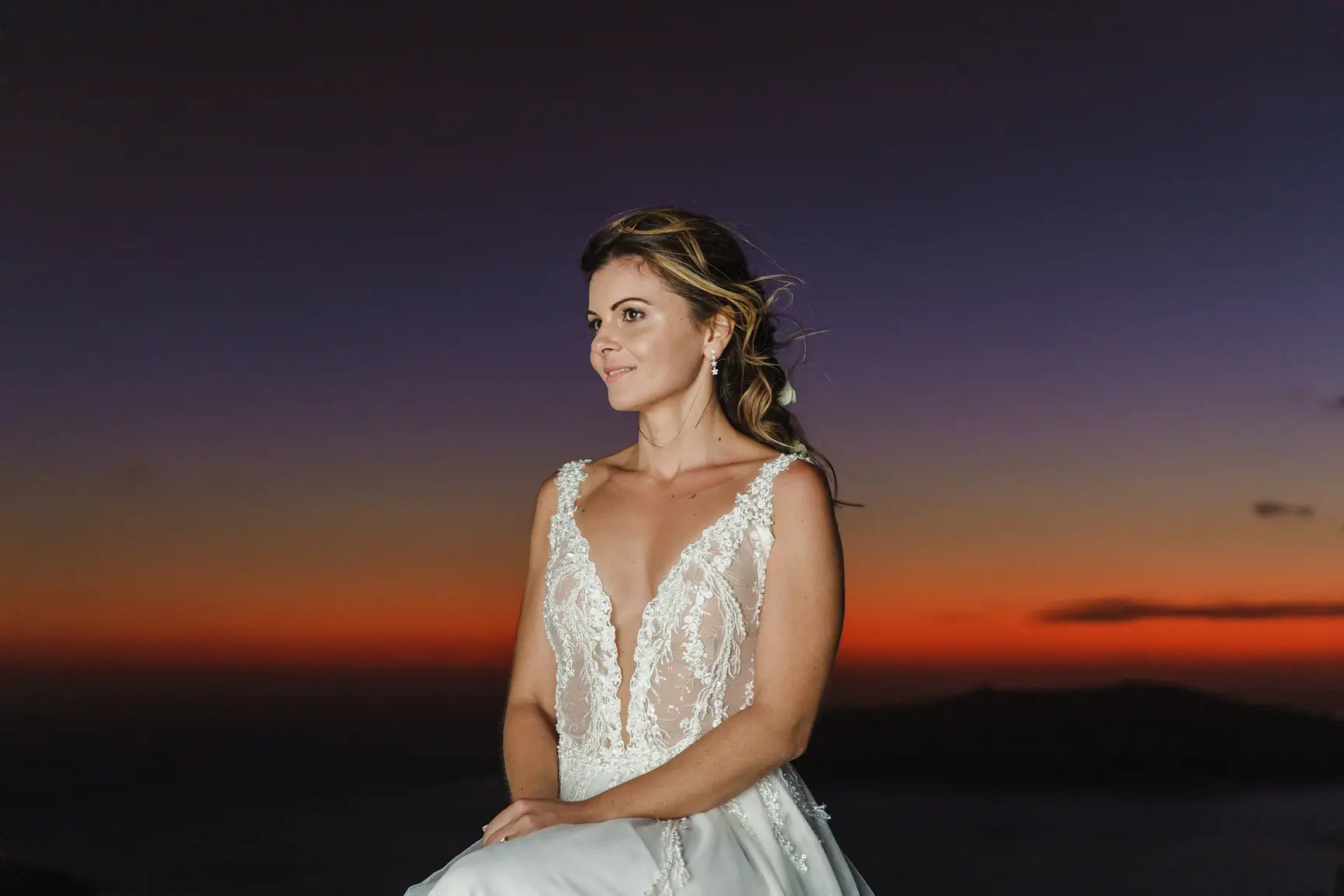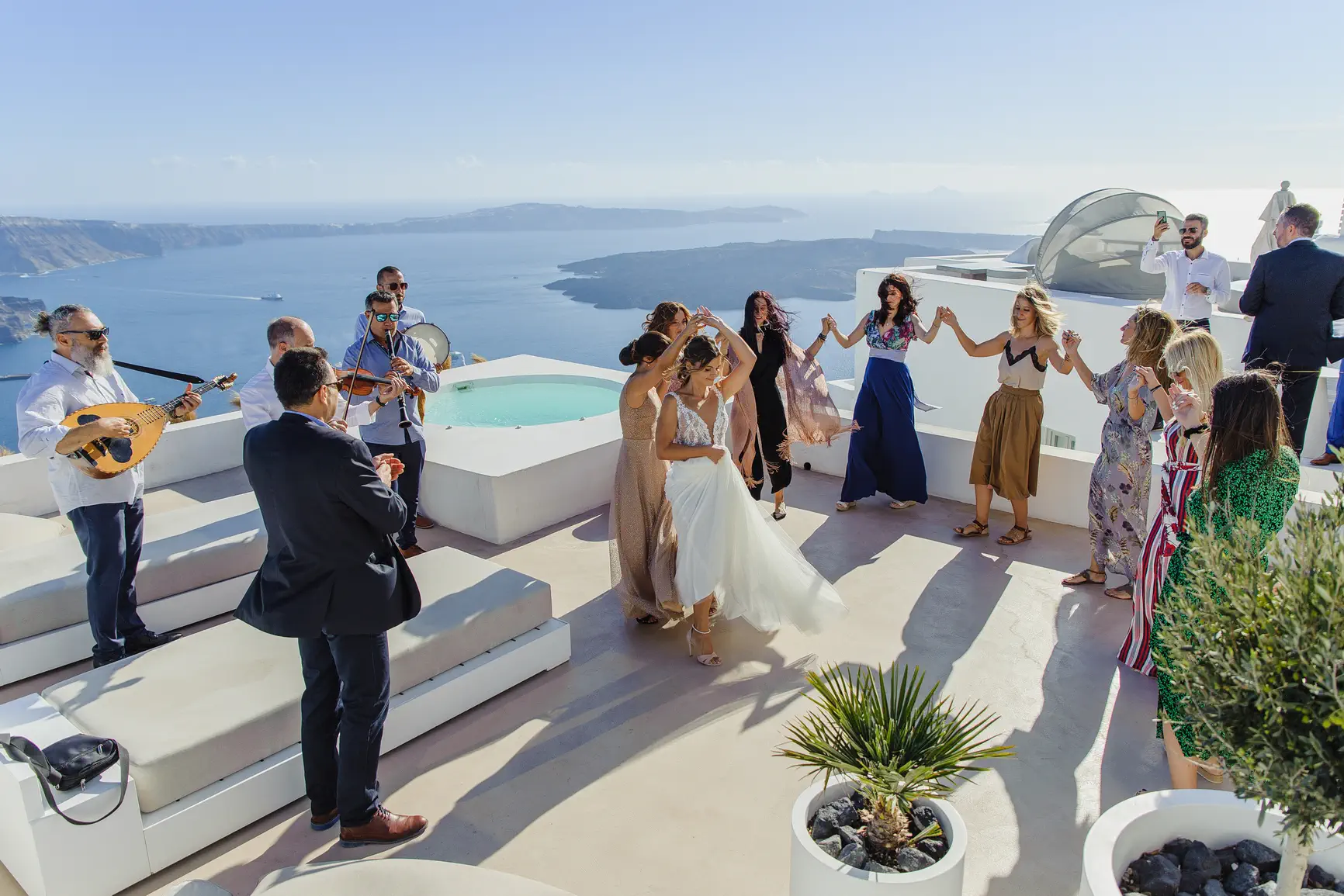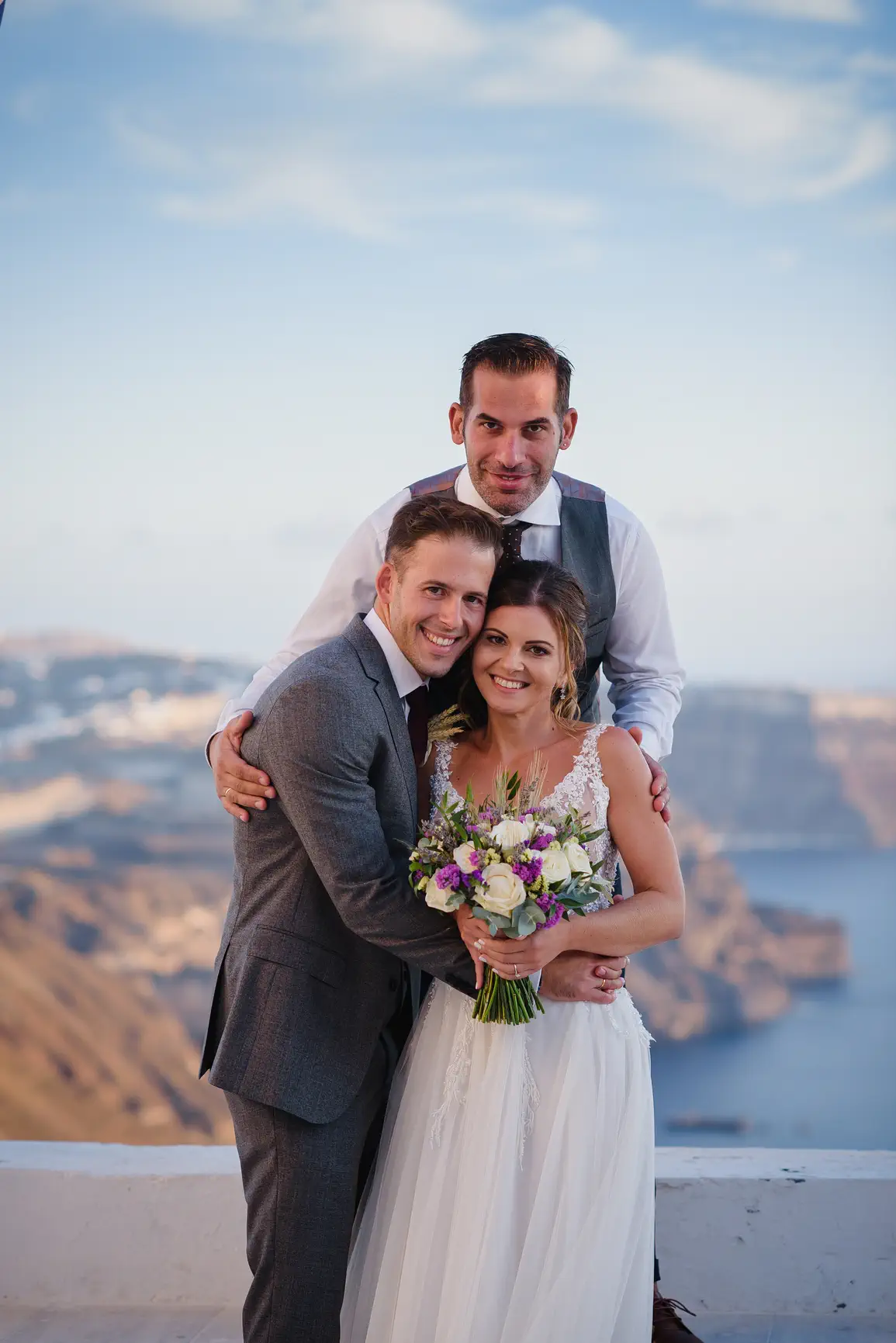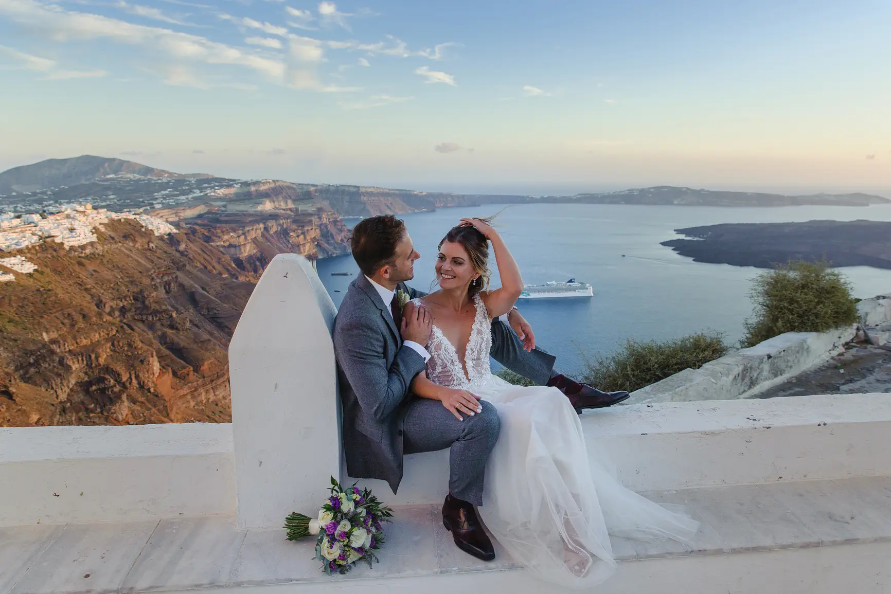 Ο γάμος τους ήταν η απόλυτη ενσάρκωση του ρομαντισμού, μια τέλεια αρμονία μεταξύ της μαγείας της Σαντορίνης και της δύναμης της αγάπης τους. Μια ημέρα που θα μείνει για πάντα χαραγμένη ως η πιο όμορφη αρχή της κοινής τους ζωής.
