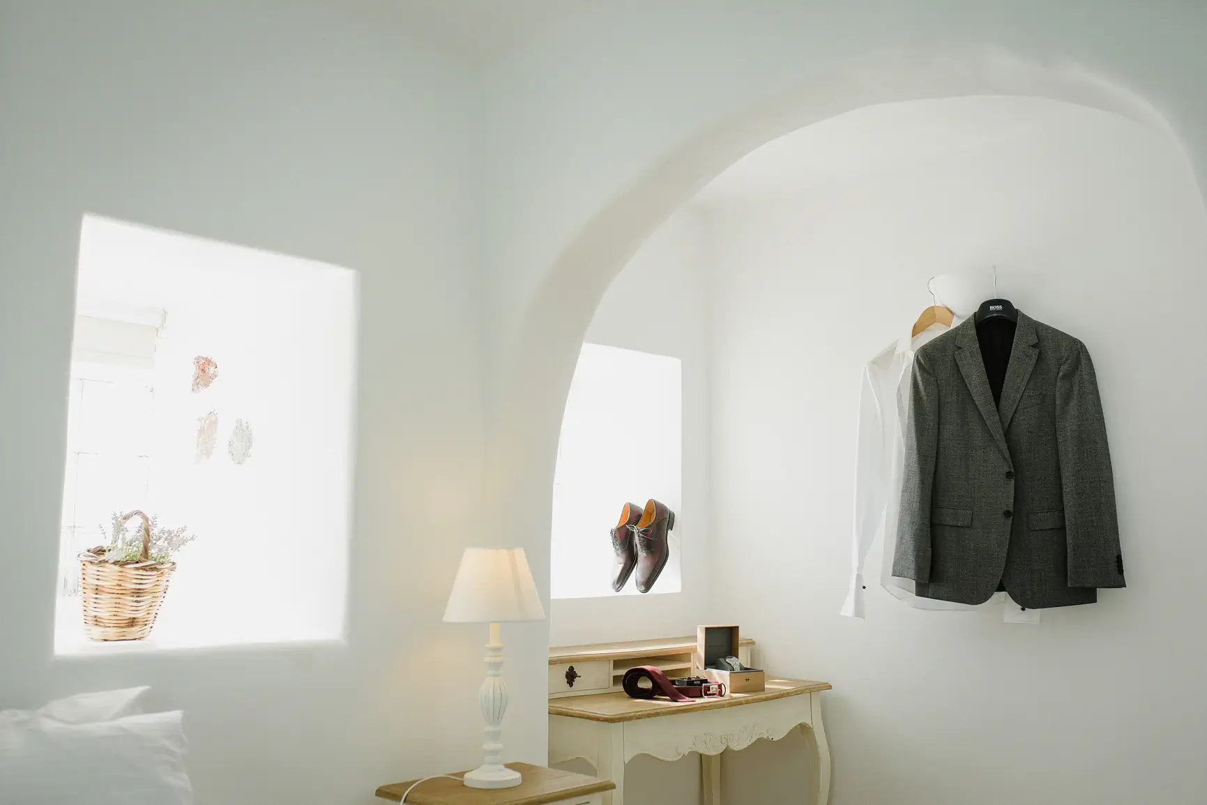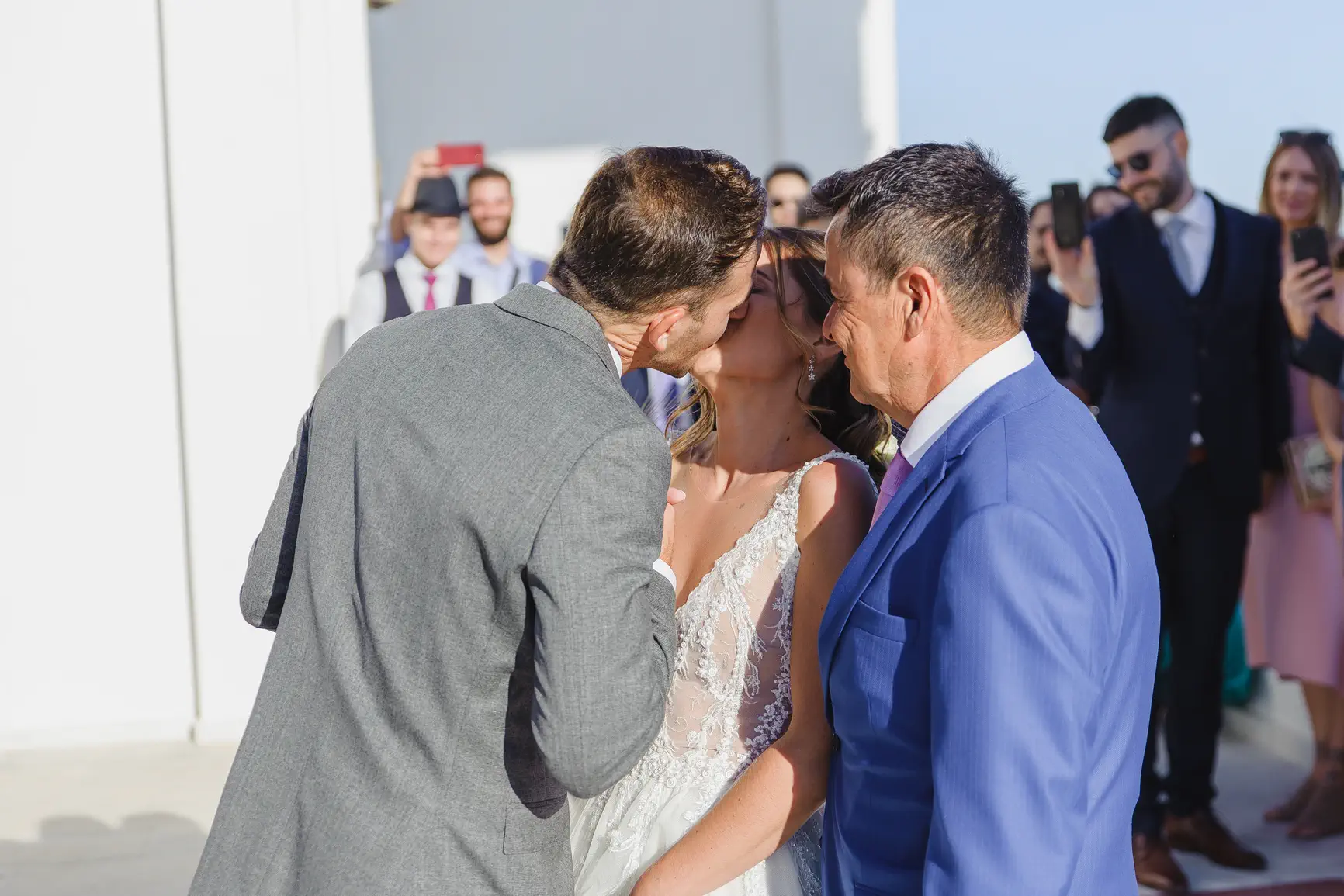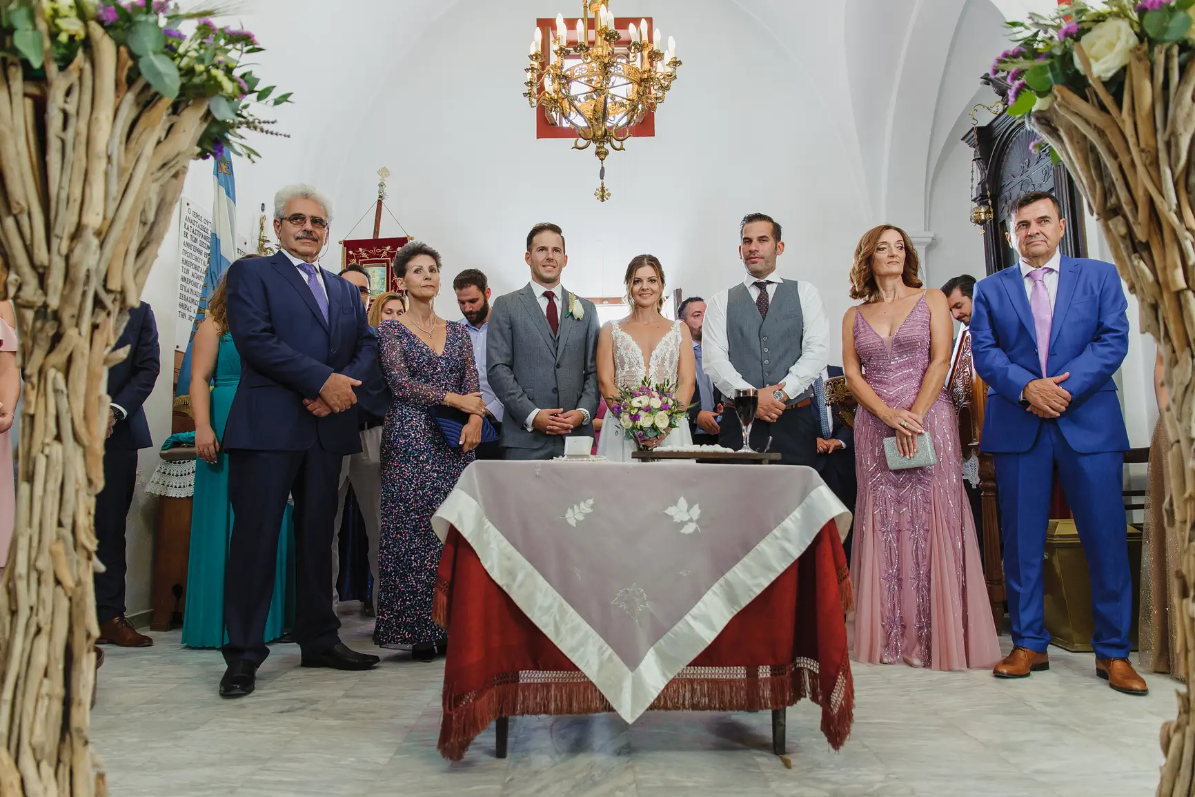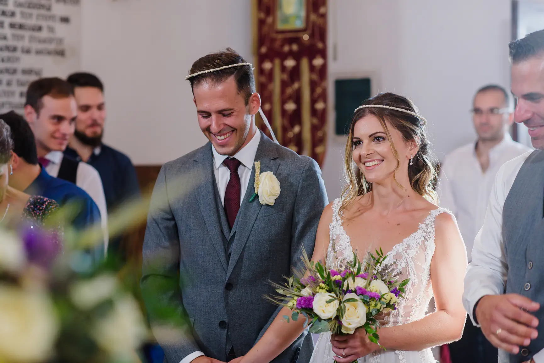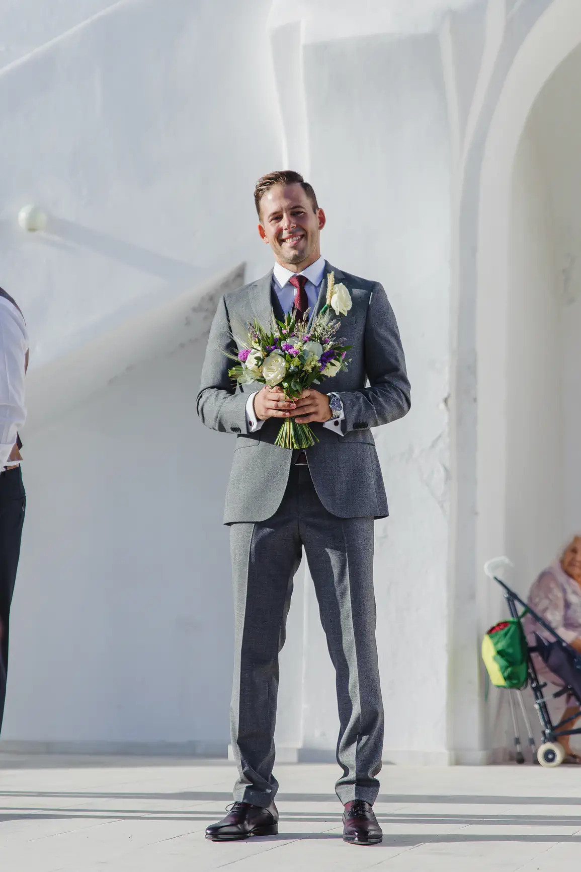 Η τελετή πραγματοποιήθηκε στην εμβληματική εκκλησία της Ανάστασης στο Ημεροβίγλι, ένα σημείο με θέα που κυριολεκτικά κλέβει την καρδιά. Με τον χαρακτηριστικό γαλάζιο τρούλο να δεσπόζει και την Καλντέρα να απλώνεται στα πόδια τους, το ζευγάρι αντάλλαξε όρκους αιώνιας πίστης και αφοσίωσης. Η άφιξη της πανέμορφης Κατερίνας, λουσμένη στο φως του κυκλαδίτικου ήλιου, ήταν μια στιγμή απαράμιλλης ομορφιάς, ενώ ο Ηλίας την υποδέχτηκε με βλέμμα γεμάτο λατρεία. Η συγκίνηση ήταν διάχυτη, καθώς οι καλεσμένοι παρακολουθούσαν την ιερή στιγμή με φόντο ένα από τα πιο όμορφα τοπία του κόσμου.