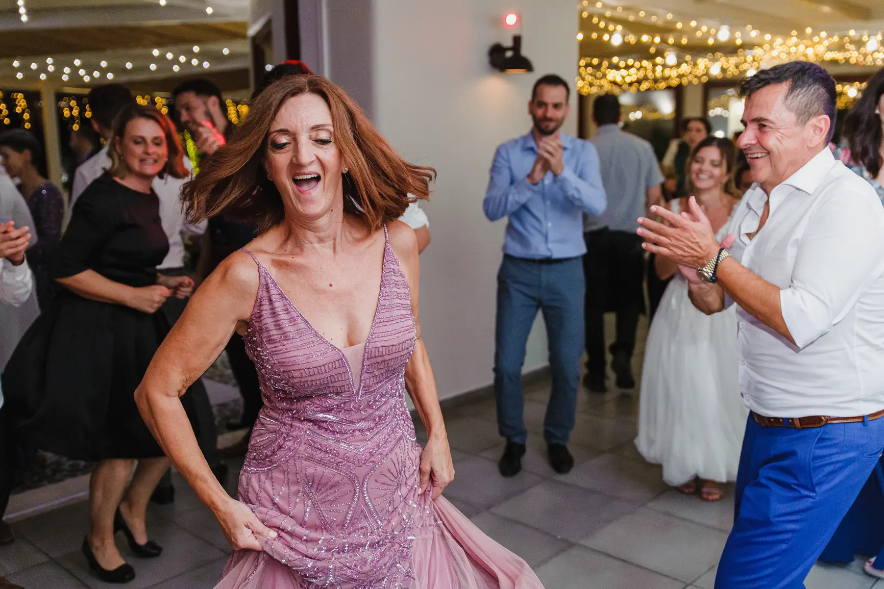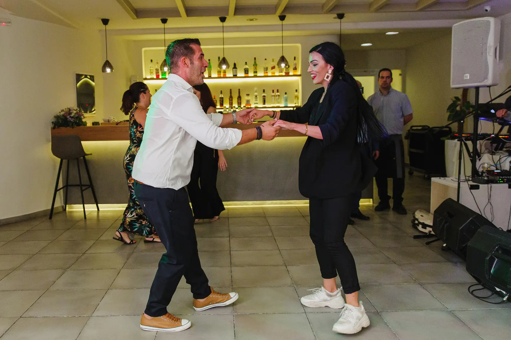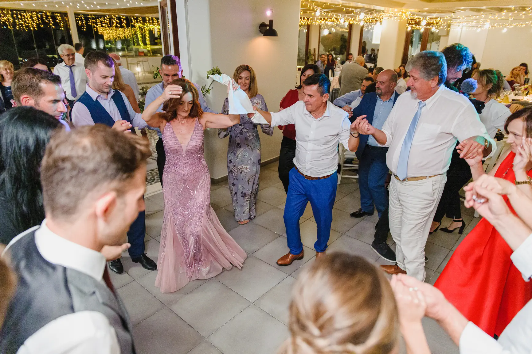 Η γιορτή της αγάπης τους συνεχίστηκε στον Πύργο, έναν χώρο που προσφέρει πανοραμική θέα σε όλο το νησί και συνδυάζει την παραδοσιακή γοητεία με την κομψότητα. Καθώς ο ήλιος έδυε, βάφοντας τον ουρανό με απίστευτα χρώματα, η δεξίωση ξεκίνησε. Η ατμόσφαιρα ήταν γεμάτη κέφι, ζωντάνια και αυθεντική ελληνική φιλοξενία. Ο χορός, η μουσική, οι γεύσεις και τα αμέτρητα χαμόγελα δημιούργησαν μια αξέχαστη βραδιά κάτω από τον έναστρο ουρανό της Σαντορίνης. Ο Ηλίας και η Κατερίνα, πιο ευτυχισμένοι από ποτέ, μοιράστηκαν τη χαρά τους με τους αγαπημένους τους.