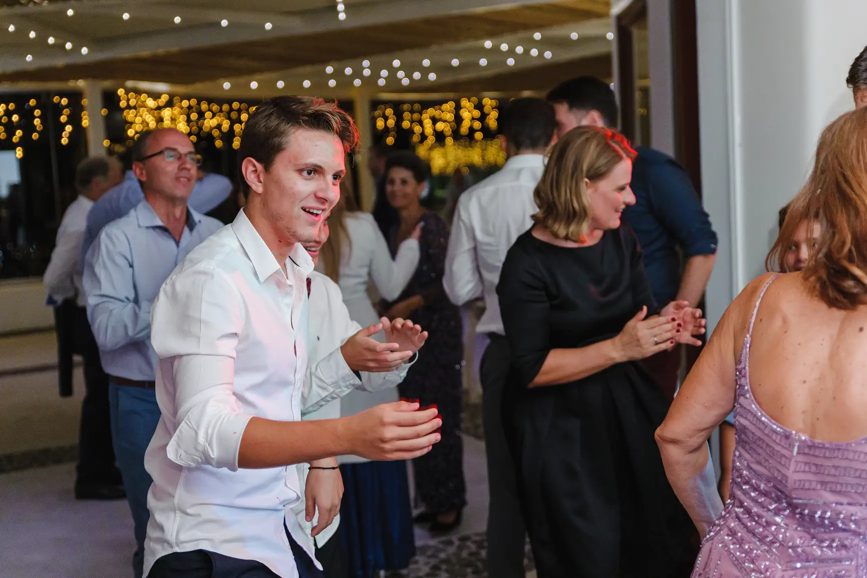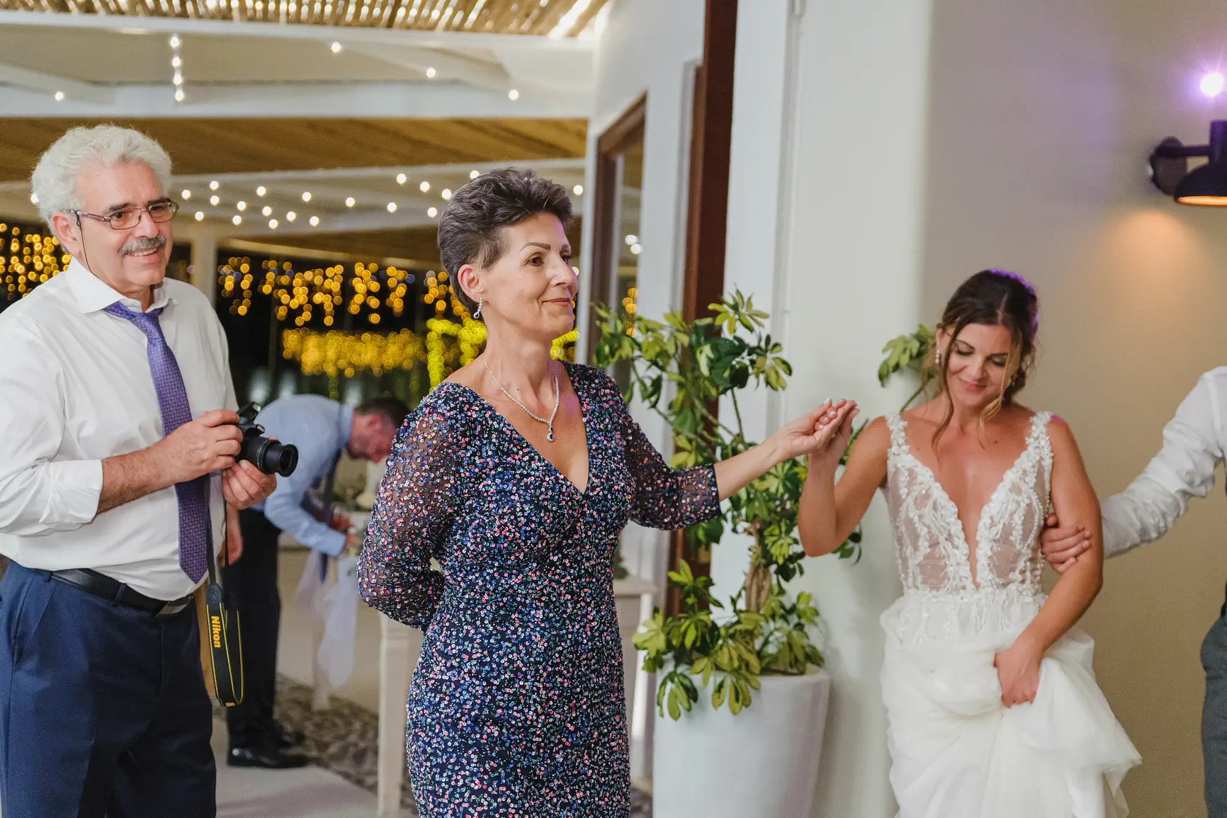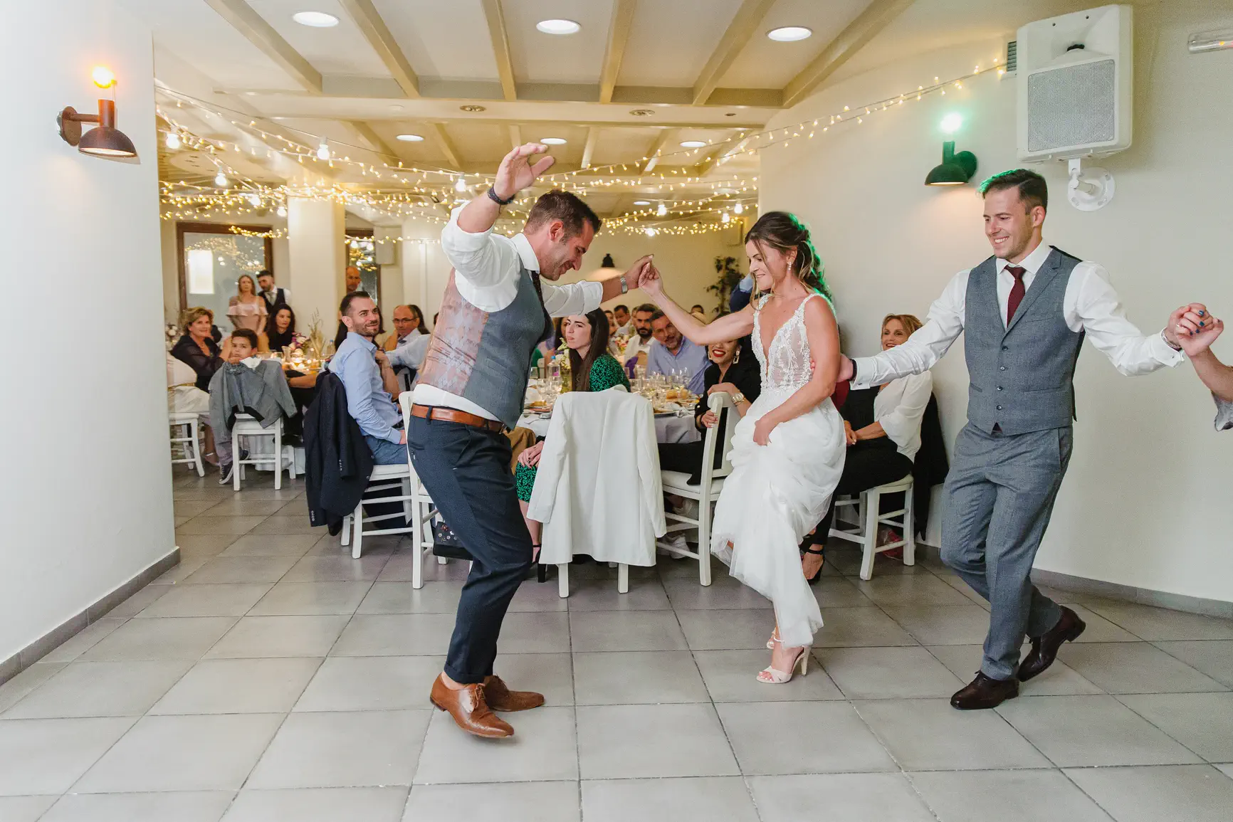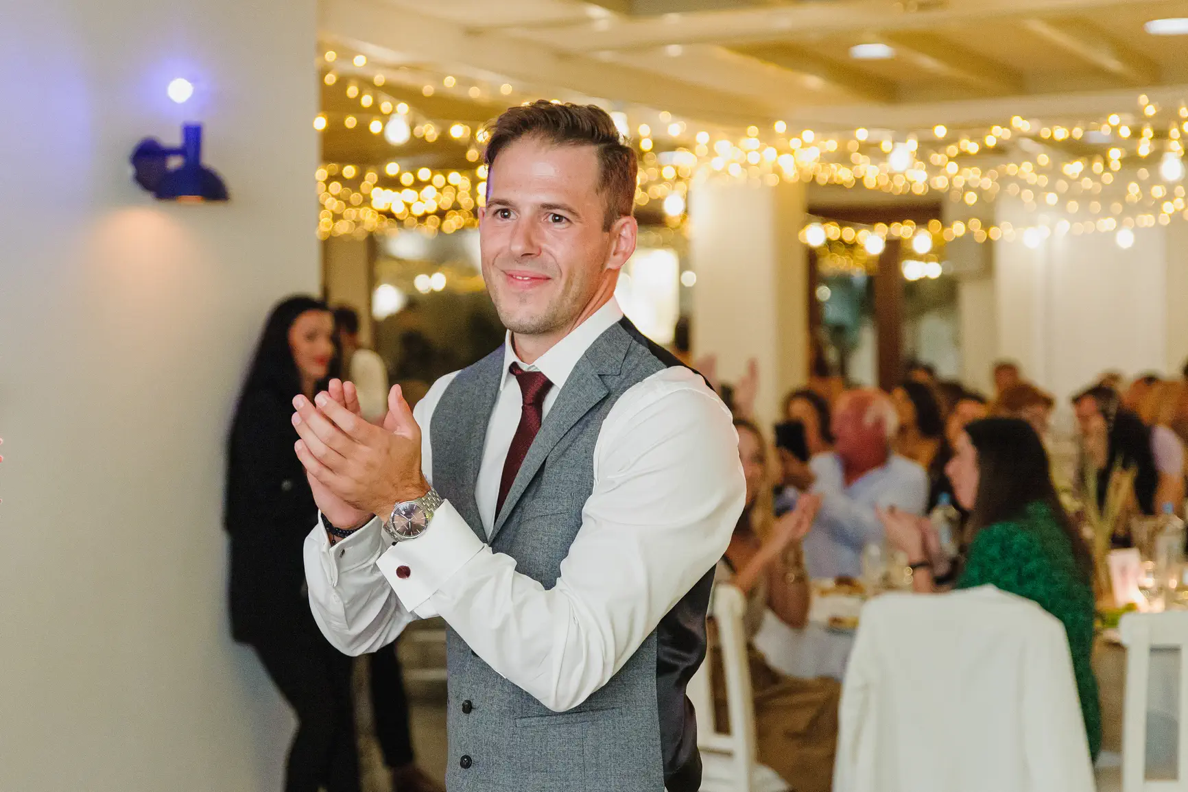 Η γιορτή της αγάπης τους συνεχίστηκε στον Πύργο, έναν χώρο που προσφέρει πανοραμική θέα σε όλο το νησί και συνδυάζει την παραδοσιακή γοητεία με την κομψότητα. Καθώς ο ήλιος έδυε, βάφοντας τον ουρανό με απίστευτα χρώματα, η δεξίωση ξεκίνησε. Η ατμόσφαιρα ήταν γεμάτη κέφι, ζωντάνια και αυθεντική ελληνική φιλοξενία. Ο χορός, η μουσική, οι γεύσεις και τα αμέτρητα χαμόγελα δημιούργησαν μια αξέχαστη βραδιά κάτω από τον έναστρο ουρανό της Σαντορίνης. Ο Ηλίας και η Κατερίνα, πιο ευτυχισμένοι από ποτέ, μοιράστηκαν τη χαρά τους με τους αγαπημένους τους.
